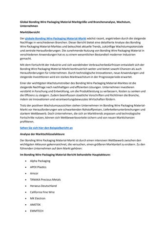 Global Bonding Wire Packaging Material Marktgröße und Branchenanalyse, Wachstum, Unternehmen