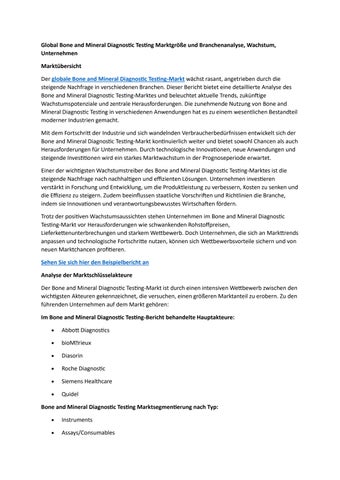 Global Bone and Mineral Diagnostic Testing Marktgröße und Branchenanalyse, Wachstum, Unternehmen