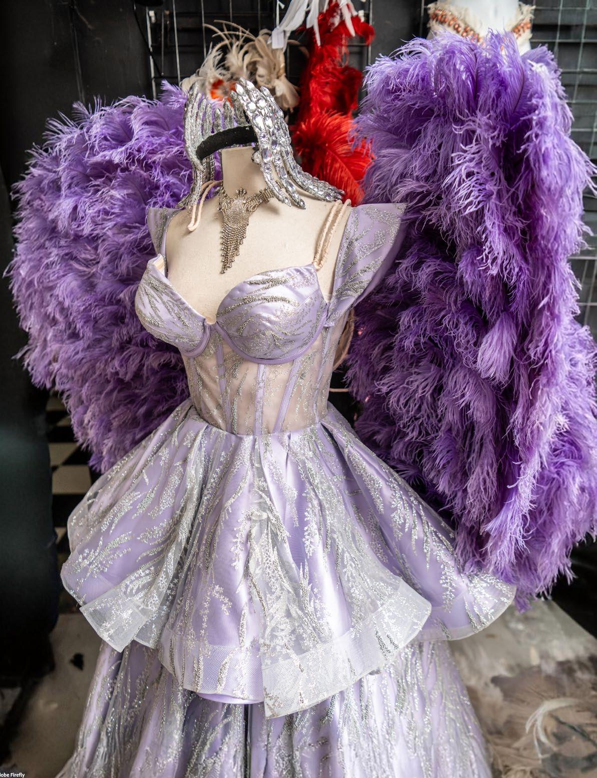 "TODAY, CABRERA RUNS HIS OWN LINE OF WINGS, HATS, AND COSTUMES MADE FROM FEATHERS, FABRICS, SEQUINS, AND STONES"