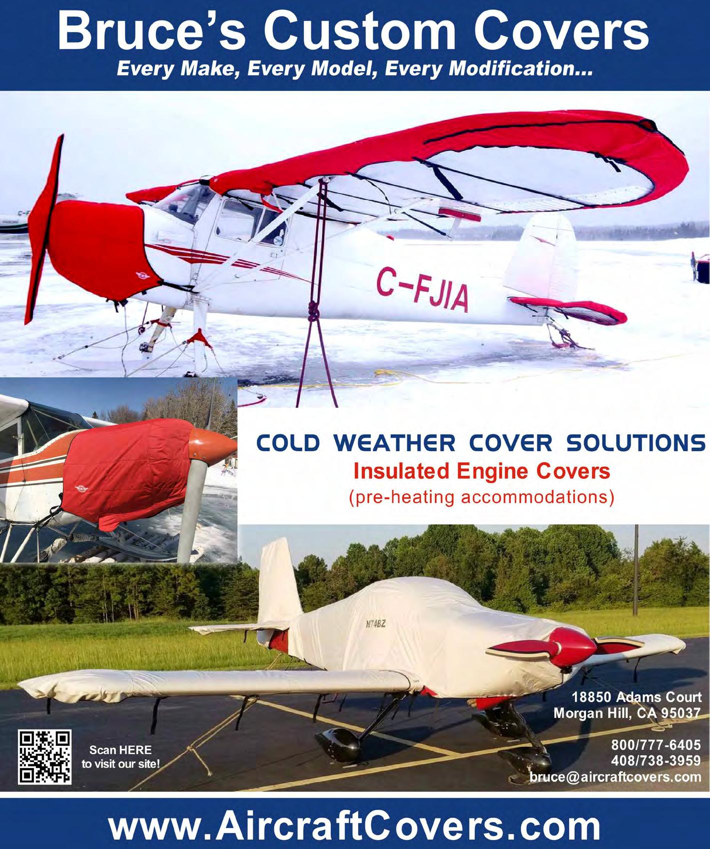 Protective covers for every make, and model,plus insulated engine covers. Bruce's Custom Covers, Morgan Hill, CA,(800)777-6405,(408) 738-3959, aircraftcovers.com. 10/19