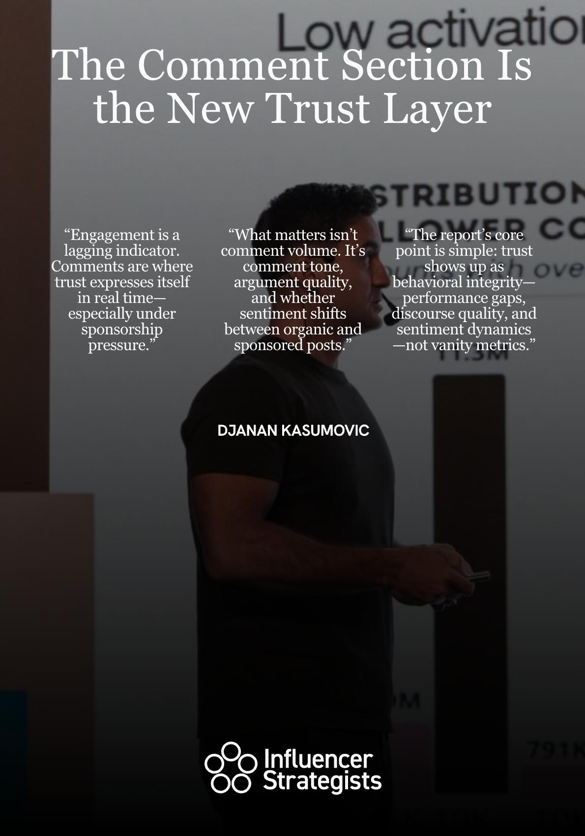 The most consistent quantifable indicator of creator trustworthiness across digital ecosystems is the sponsored-organic performance gap. This delta captures the “reputation-burning efect” that emerges when commercial content reduces perceived authenticity.