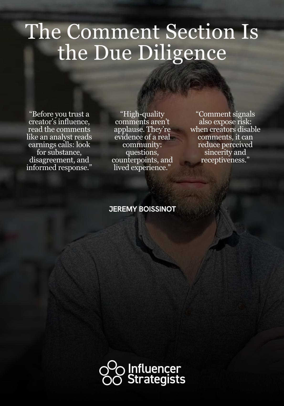 3. Persistence and sincerity checkReview historical audience feedback dynamics. Creators who disable comments are perceived as less receptive to consumer voice and therefore less sincere.