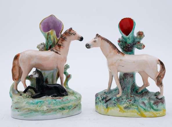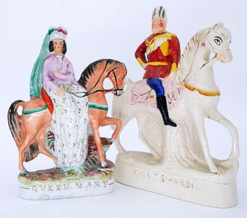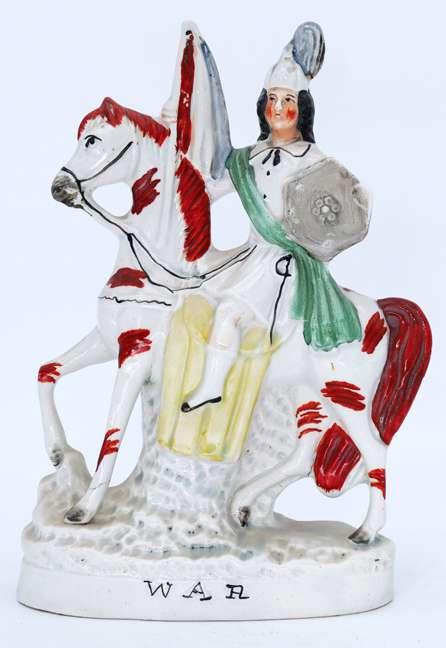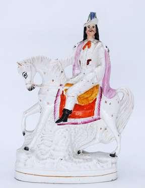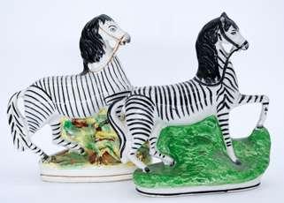 No Staffordshire collection is complete without ‘flatbacks’, called such as they were usually decorated on one side to be placed before a wall. Sheila has amassed Royalty, Politicians, Actors, Opera Stars and Military Men, as well as Historical Characters and events. Let’s not forget horses, Sheila was the well known founder and owner of the Corriegarth Stud, she also was a past President of the Highland Pony Society. Her passion for horses runs through this collection, and you will find many equestrian figures, horses and a profusion of zebras.