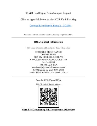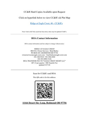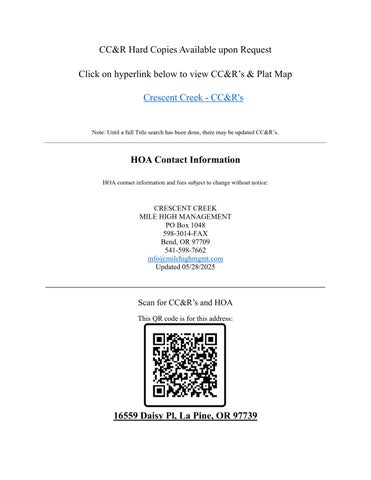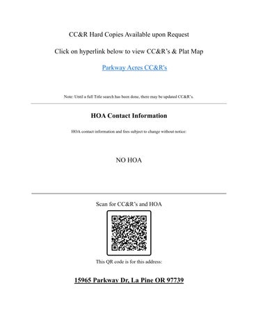 15965 Parkway Dr La Pine - CC&R's & HOA