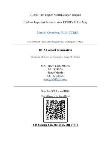 545 Sunrise Cir, Metolius - CC&R's & HOA