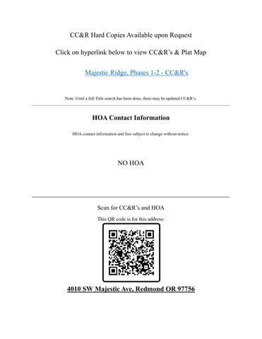 4010 SW Majestic Ave, Redmond - CC&R's & HOA