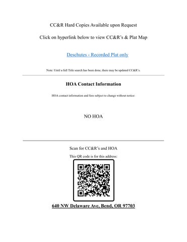 640 NW Delaware Ave, Bend - CC&R's & HOA