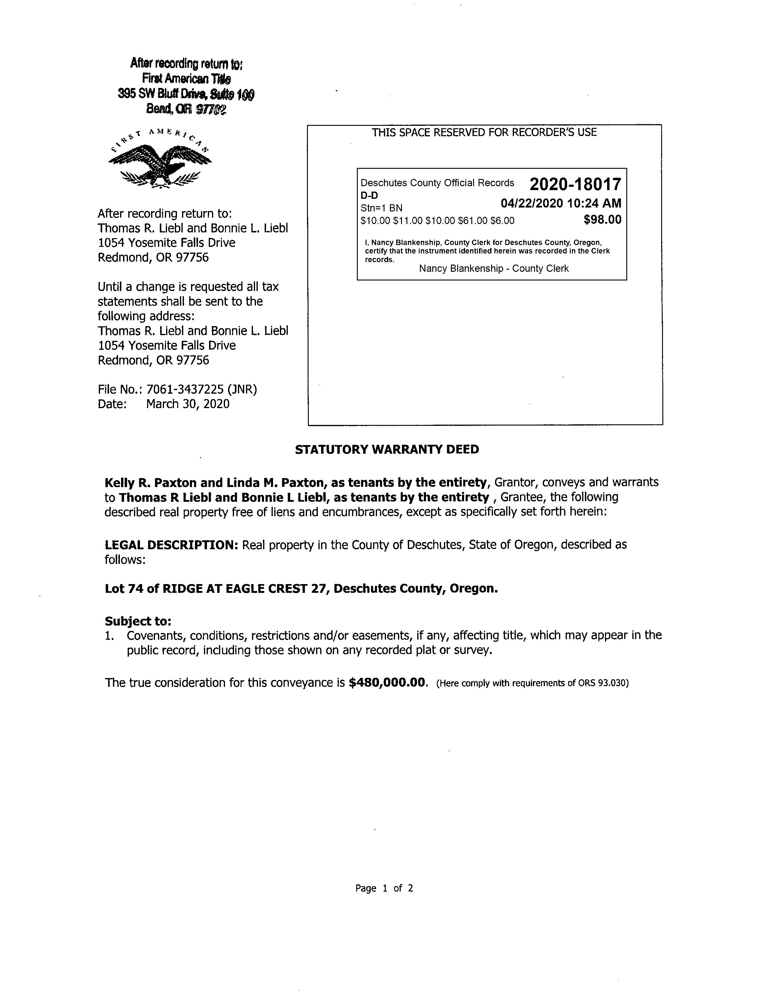 Review of digital records maintained by the Deschutes County Assessor’s Office, Tax Office, Finance Office, and the Community Development Department indicates that there are no special tax, assessment or property development related notations associated with this account. However, independent verification of the presence of other Deschutes County tax, assessment, development, and additional property related considerations is recommended. Confirmation is commonly provided by title companies, real estate agents, developers, engineering and surveying firms, and other parties who are involved in property transactions or property development. In addition, County departments may be contacted directly to discuss the information.