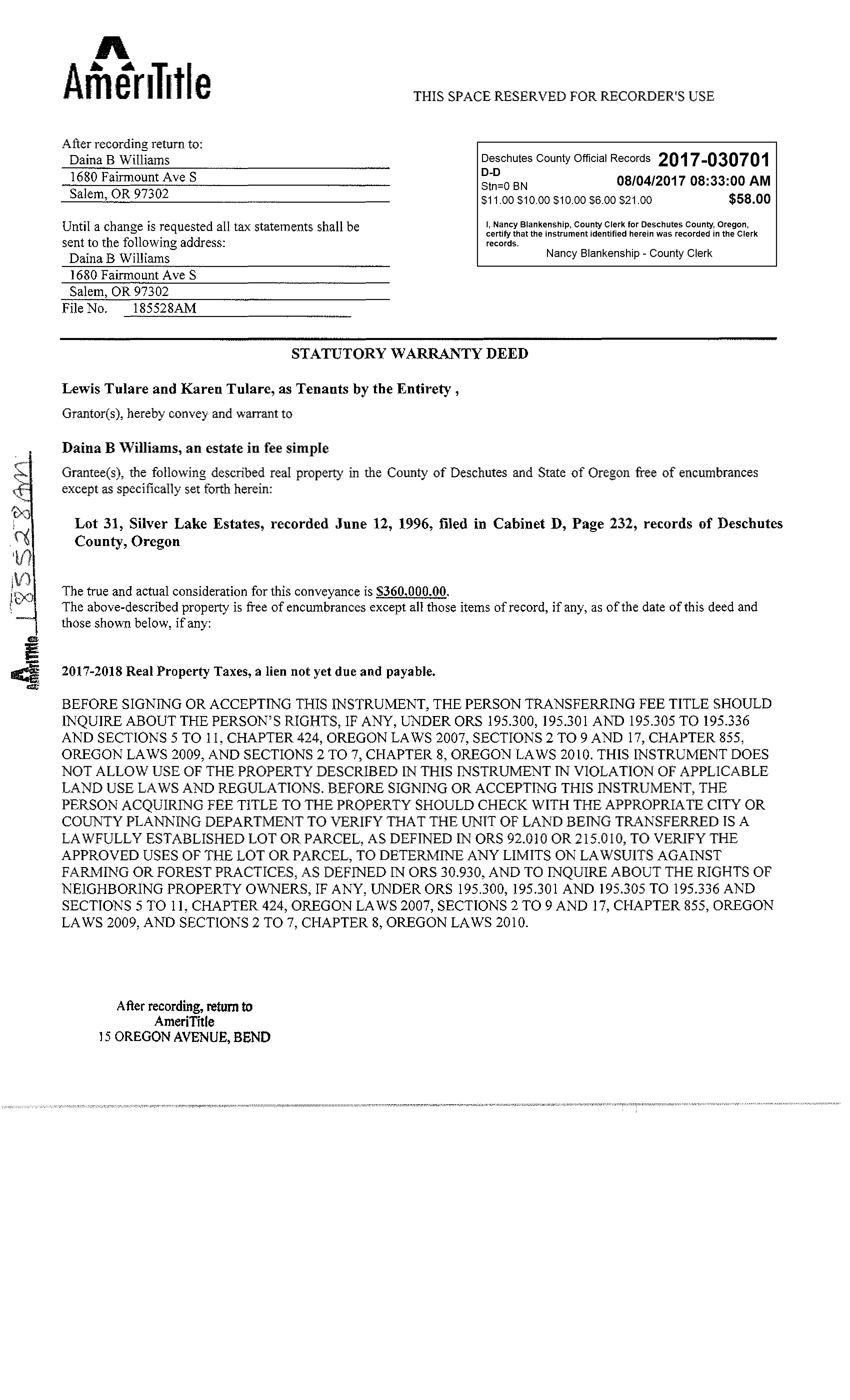 PREPARED BY Danetta Rider danettar@deschutestitle.com