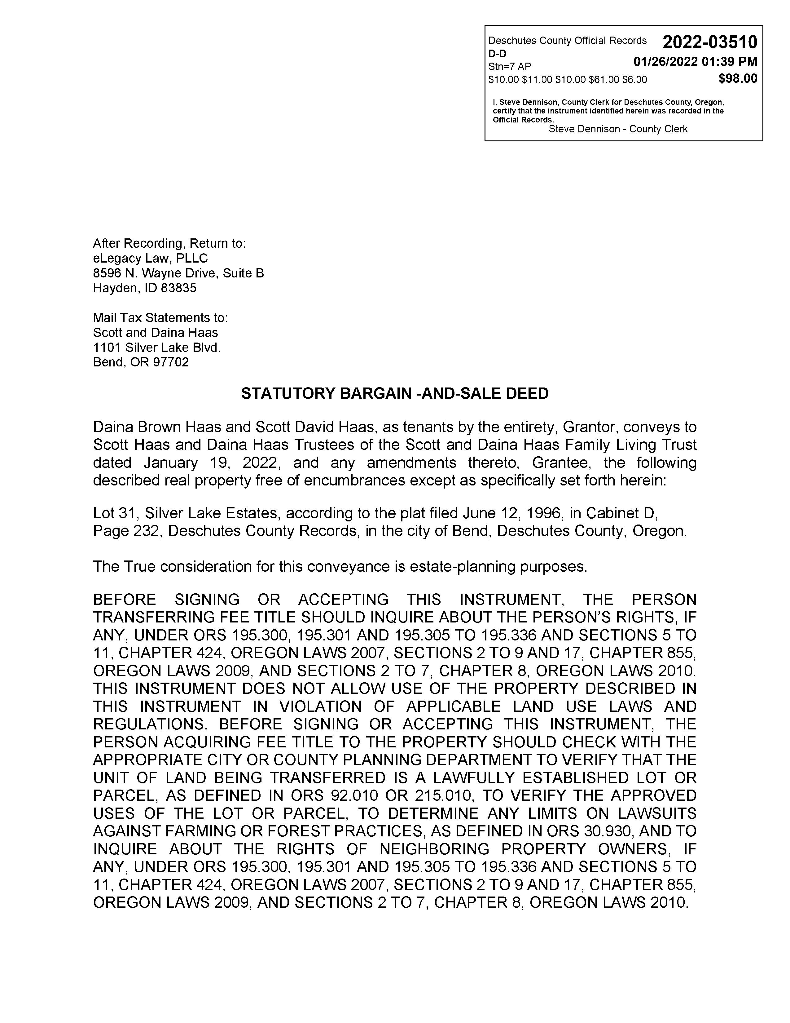 Owner: Scott&DainaHaasFamilyLivingTrust