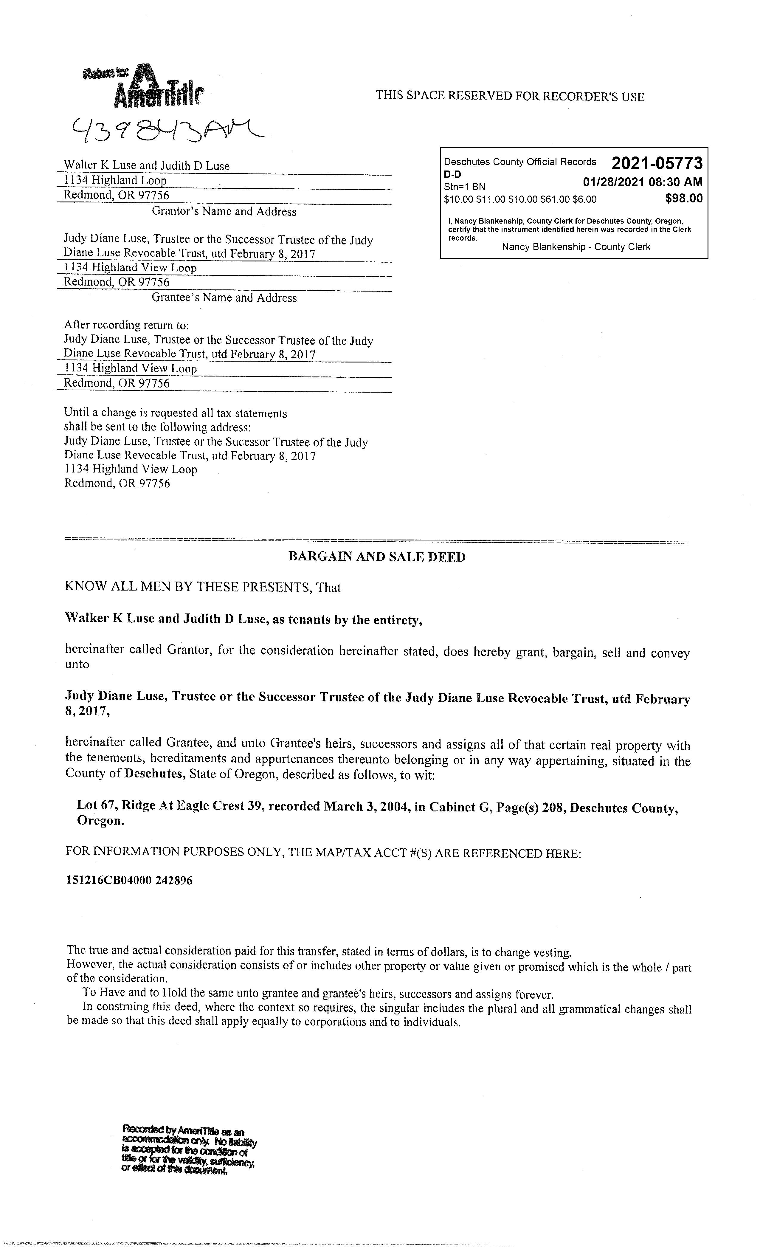 Deschutes County Title has provided this information as a courtesy and assumes no liability for the accuracy of the data and does not warranty the fitness of this product for any particular purpose. 1134 Highland View Loop|Redmond|Oregon|97756 Bend 397 SW Upper Terrace Dr Bend, Oregon 97702 Office: 541.389.2120 Fax: 541.389.2180 Redmond 845 SW Veterans Way Redmond, Oregon 97756 Office: 541.527.1274 Fax: 541.527.1281 La Pine 51515 Huntington Rd La Pine, Oregon 97739 Office: 541.876.6990 Fax: 541.876.2740 St Helens 240 South First Street St. Helens, Oregon 97051 Office: 503.397.2587 Fax: 503.366.1708 HOMEBOOK www.deschutestitle.com