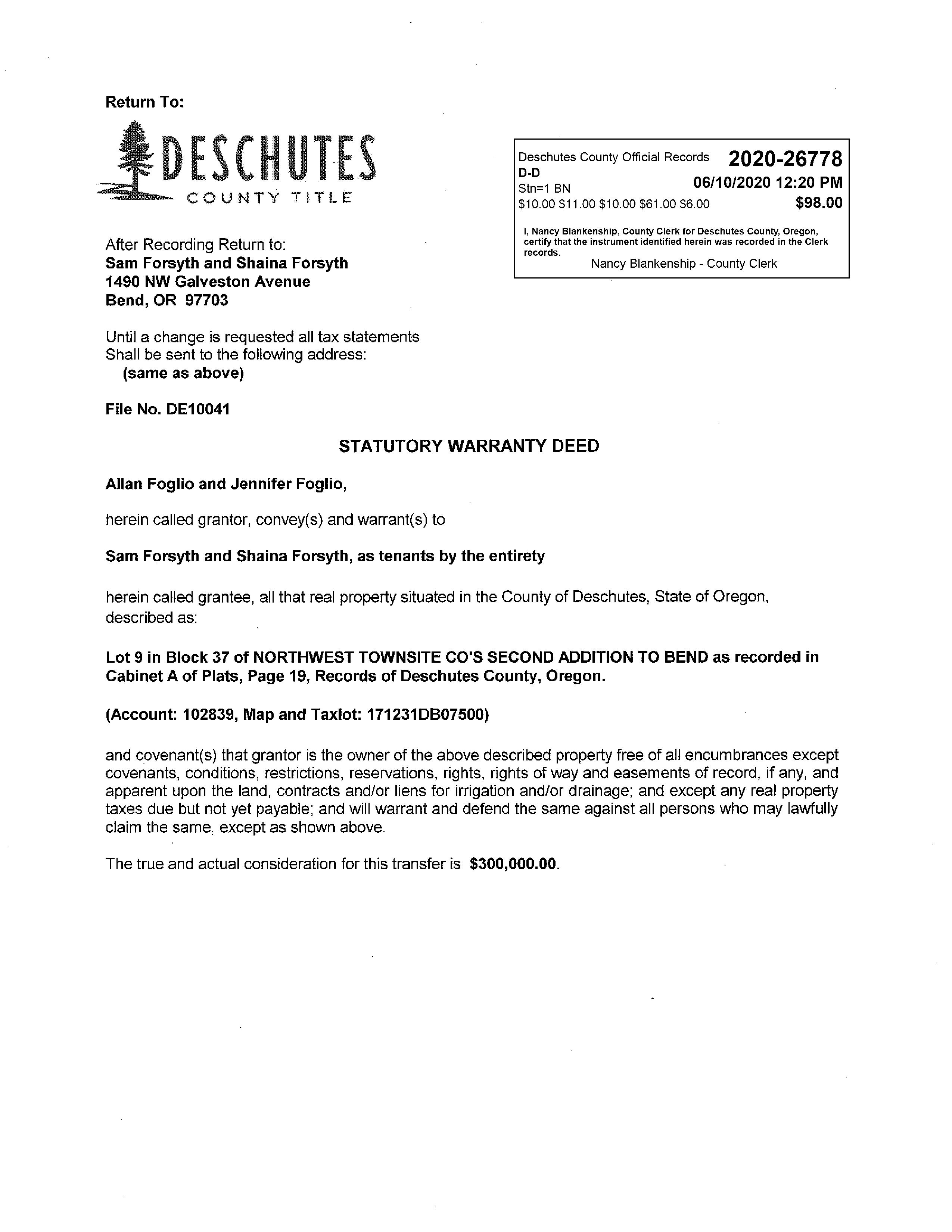 Deschutes County Title has provided this information as a courtesy and assumes no liability for the accuracy of the data and does not warranty the fitness of this product for any particular purpose. 1490 NW Galveston Ave|Bend|Oregon|97703 Bend 397 SW Upper Terrace Dr Bend, Oregon 97702 Office: 541.389.2120 Fax: 541.389.2180 Redmond 845 SW Veterans Way Redmond, Oregon 97756 Office: 541.527.1274 Fax: 541.527.1281 La Pine 51515 Huntington Rd La Pine, Oregon 97739 Office: 541.876.6990 Fax: 541.876.2740 St Helens 240 South First Street St. Helens, Oregon 97051 Office: 503.397.2587 Fax: 503.366.1708 HOMEBOOK www.deschutestitle.com