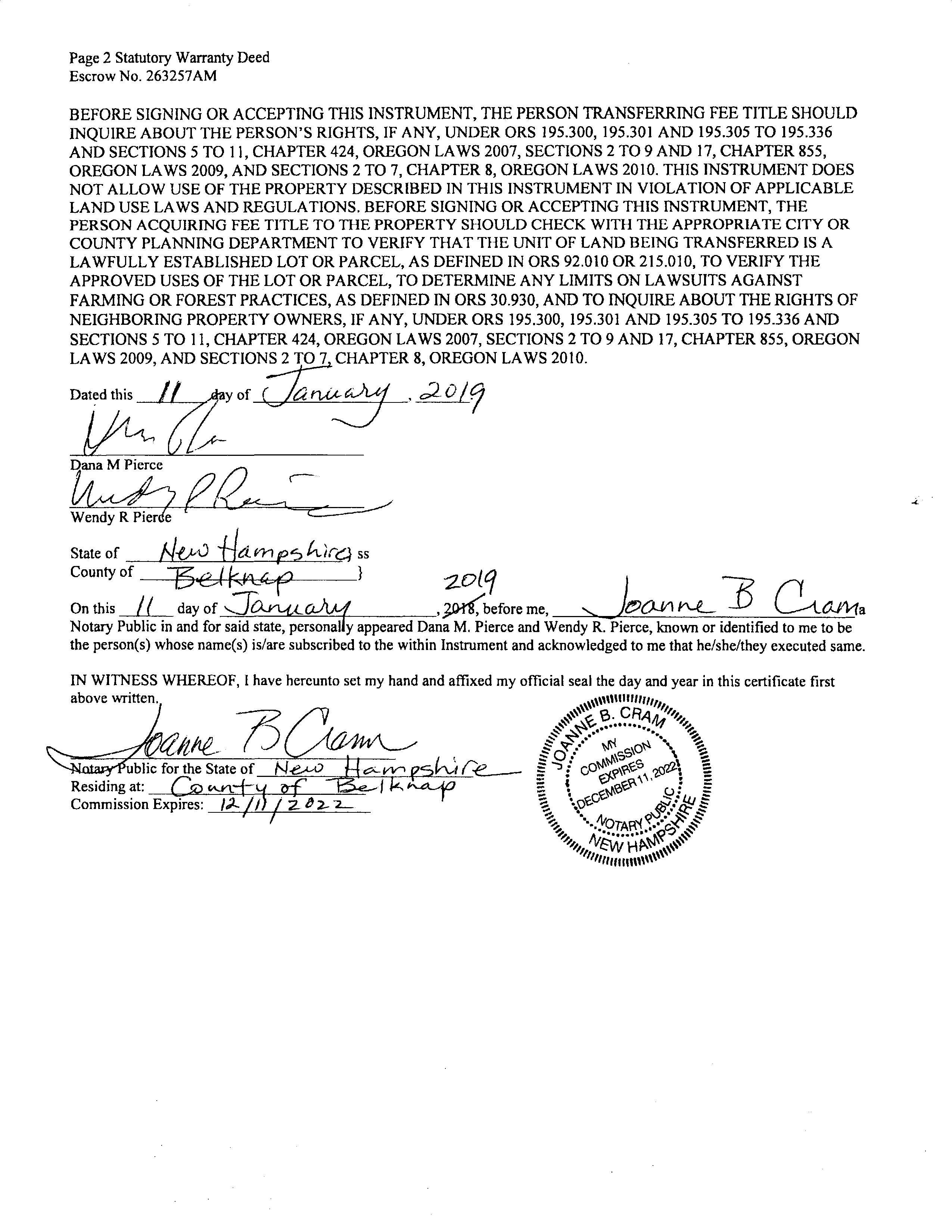 Permit Number: PIERCE, DANA M & WENDY R Permit Name: 11/05/2018 Application Date: 11/21/2018 Issue Date: Final Date: