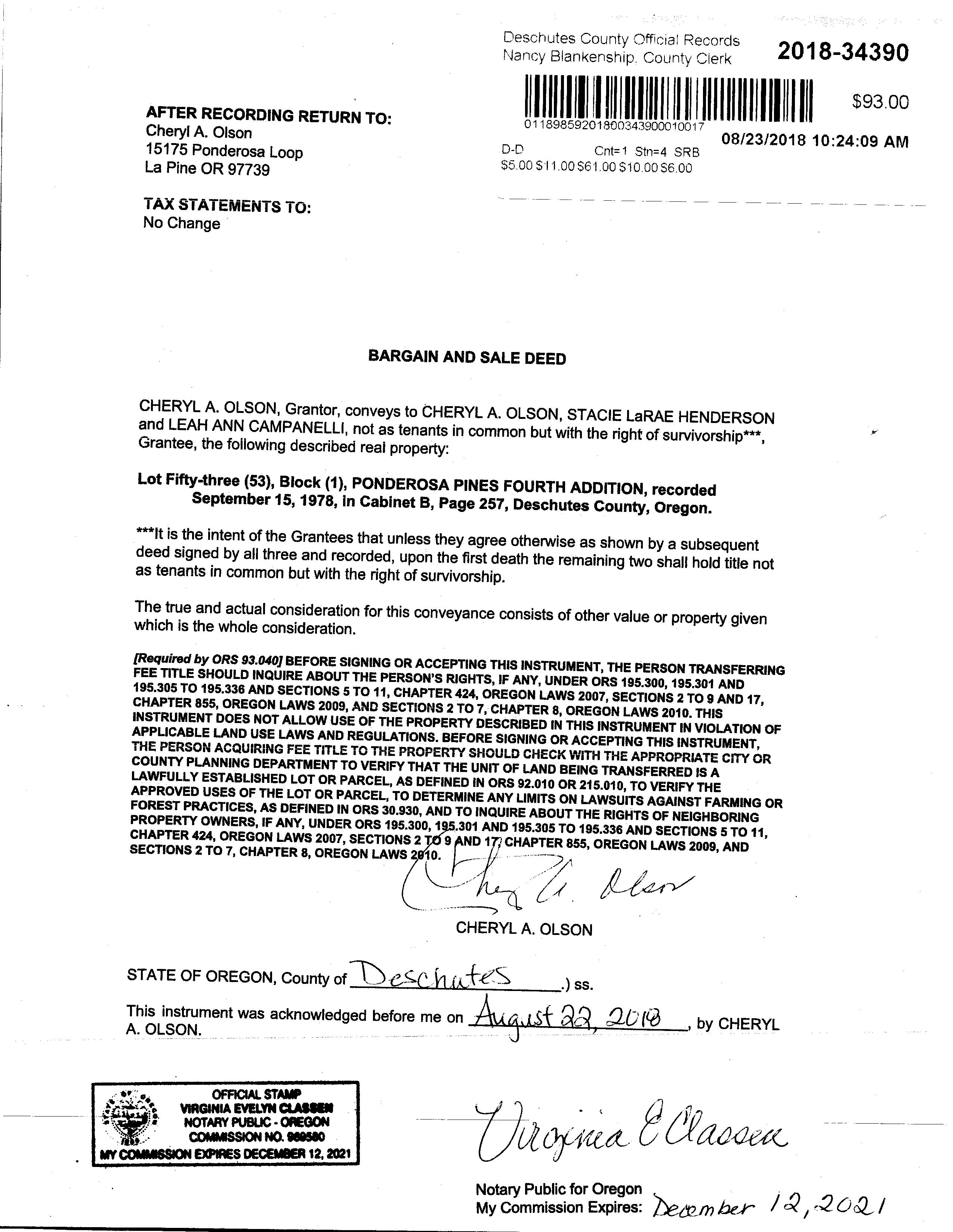 Prepared By: Danetta Rider 845 SW Veterans Way Redmond, OR 97760 Office: 541-527-1274 Email: danettar@deschutestitle.com “Service is the Difference” Homebook DISCLAIMER: Deschutes County Title has provided this information as a courtesy and assumes no liability for errors, omissions, or the accuracy of the data and does not warranty the fitness of this product for any particular purpose. Bend 397 SW Upper Terrace Dr Bend, Oregon 97702 Office: 541.389.2120 Fax: 541.389.2180 Redmond 845 SW Veterans Way Redmond, Oregon 97756 Office: 541.527.1274 Fax: 541.527.1281 La Pine 51515 Huntington Rd La Pine, Oregon 97739 Office: 541.876.6990 Fax: 541.876.2740 St Helens 240 South First Street St. Helens, Oregon 97051 Office: 503.397.2587 Fax: 503.366.1708 Prepared for Laurie Lohoefner cottageorcastle@gmail.com (360) 601-7467