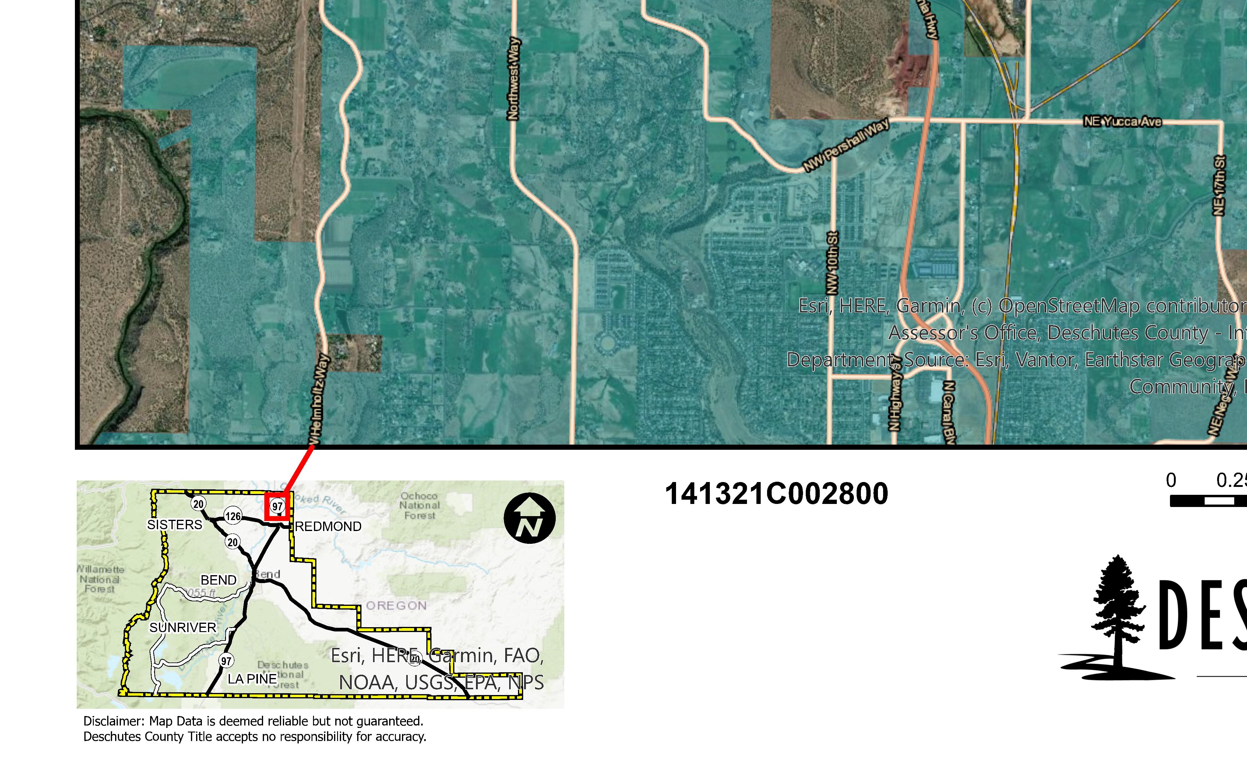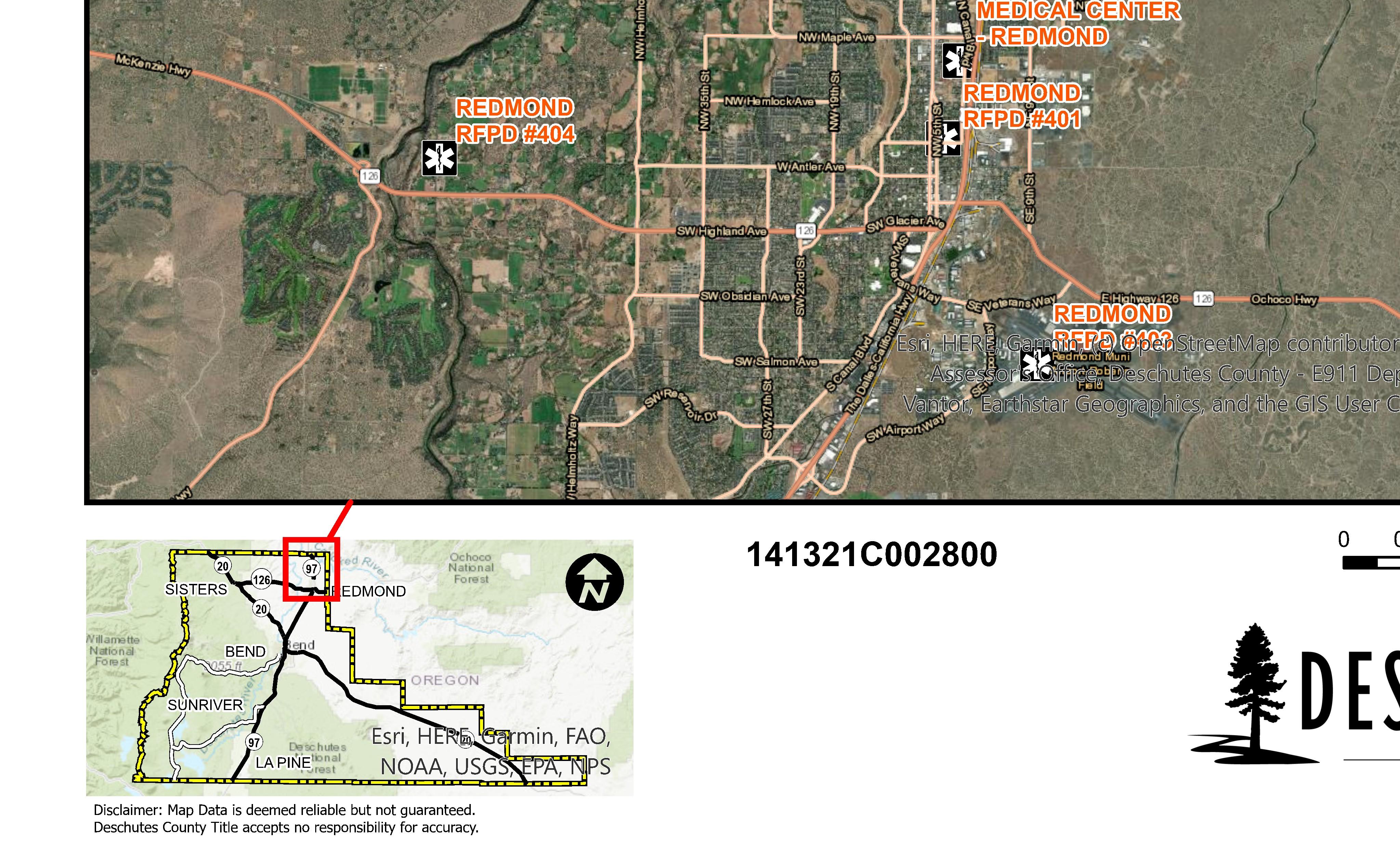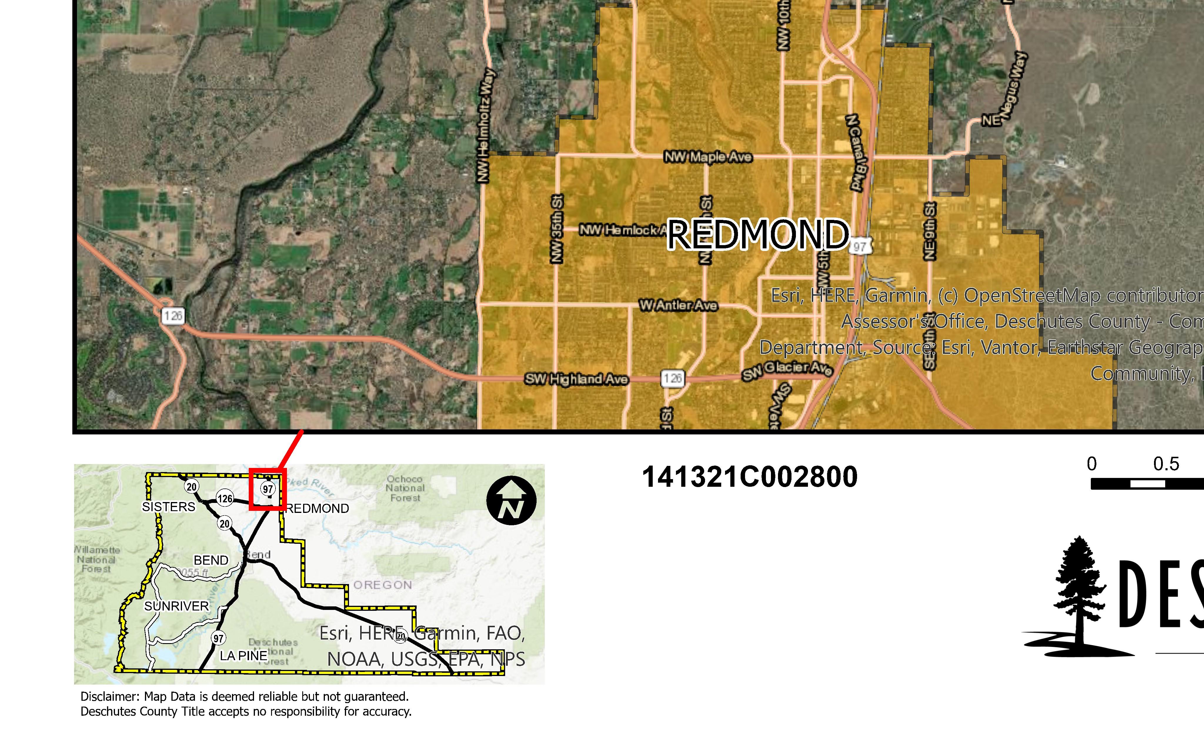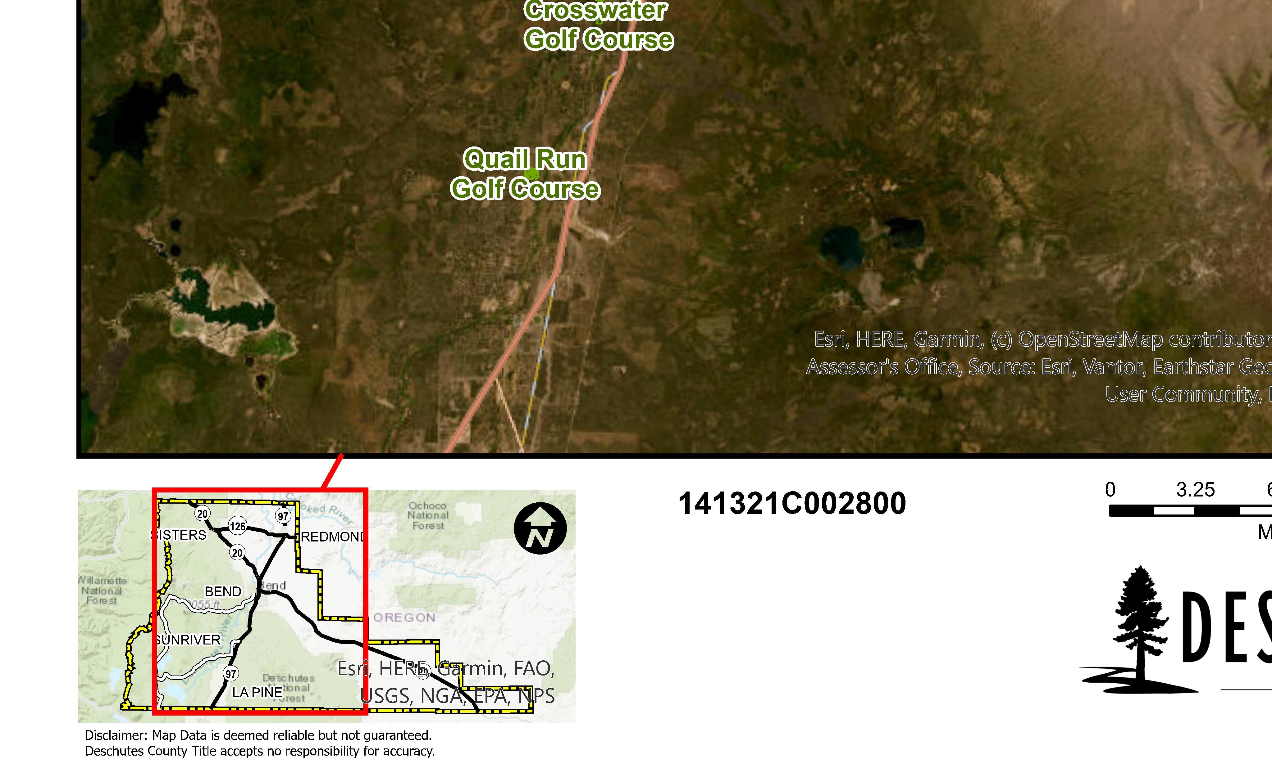 The information and maps presented in this report are provided for your convenience. Every reasonable effort has been made to assure the accuracy of the data and associated maps. Deschutes County makes no warranty, representation or guarantee as to the content, sequence, accuracy, timeliness or completeness of any of the data provided herein. Deschutes County explicitly disclaims any representations and warranties, including, without limitation, the implied warranties of merchantability and fitness for a particular purpose. Deschutes County shall assume no liability for any errors, omissions, or inaccuracies in the information provided regardless of how caused. Deschutes County assumes no liability for any decisions made or actions taken or not taken by the user of this information or data furnished hereunder.