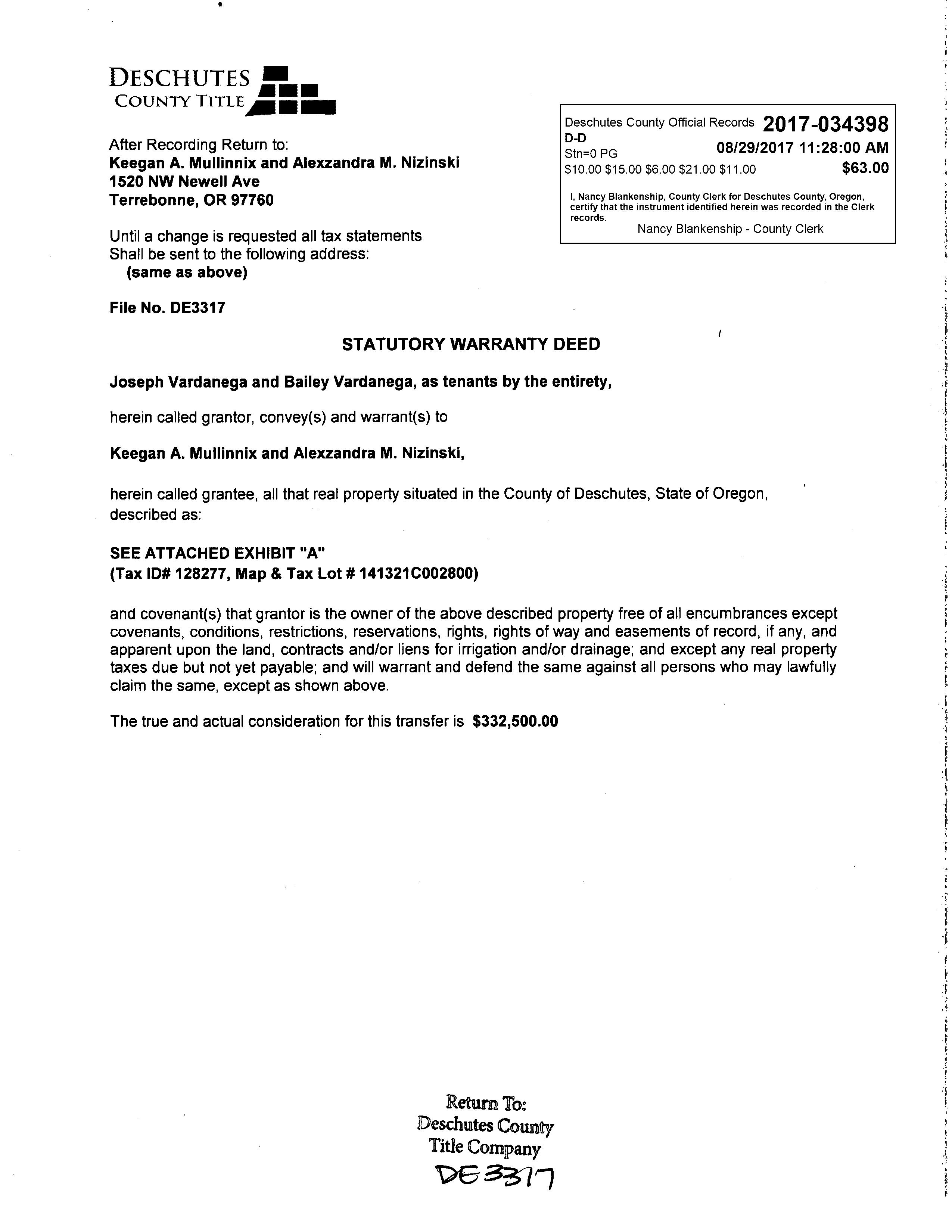 PREPARED BY Danetta Rider danettar@deschutestitle com