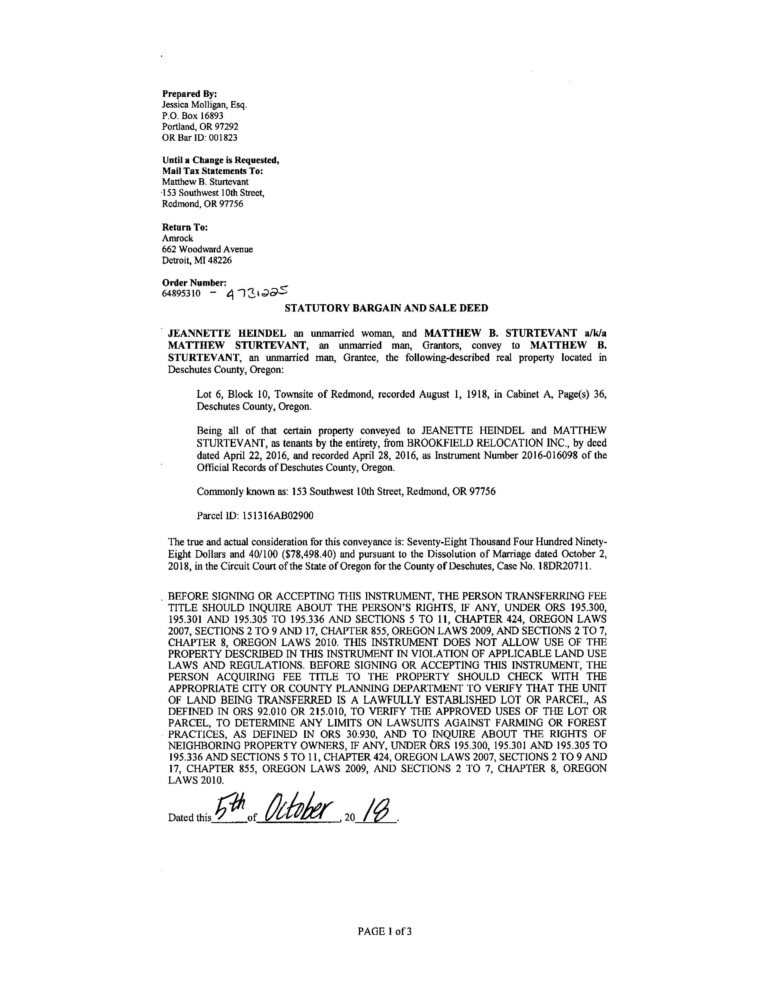 www.deschutestitle.com Deschutes County Title has provided this information as a courtesy and assumes no liability for the accuracy of the data and does not warranty the fitness of this product for any particular purpose.