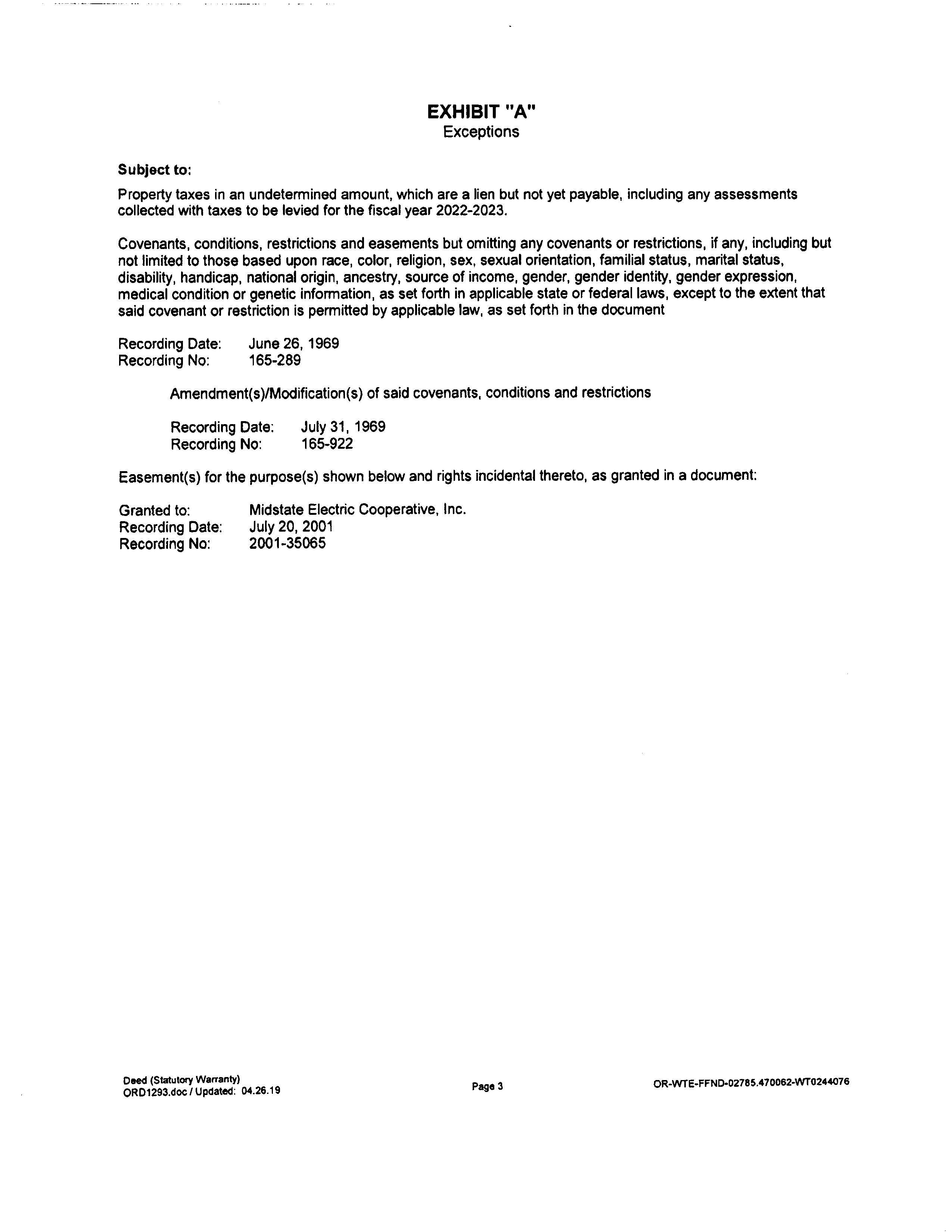Note: Until a full title search is completed, there may be additional CC&R’s