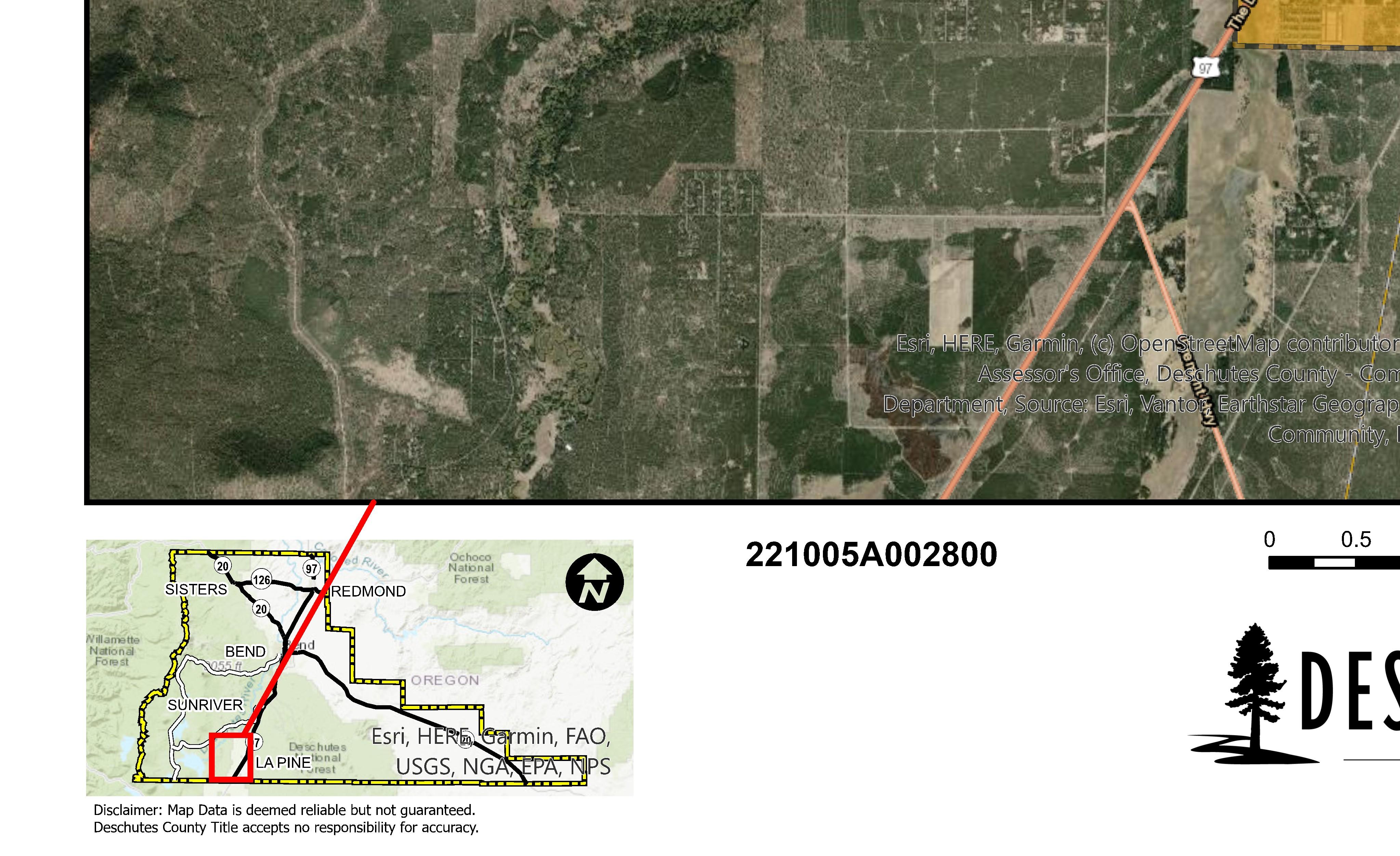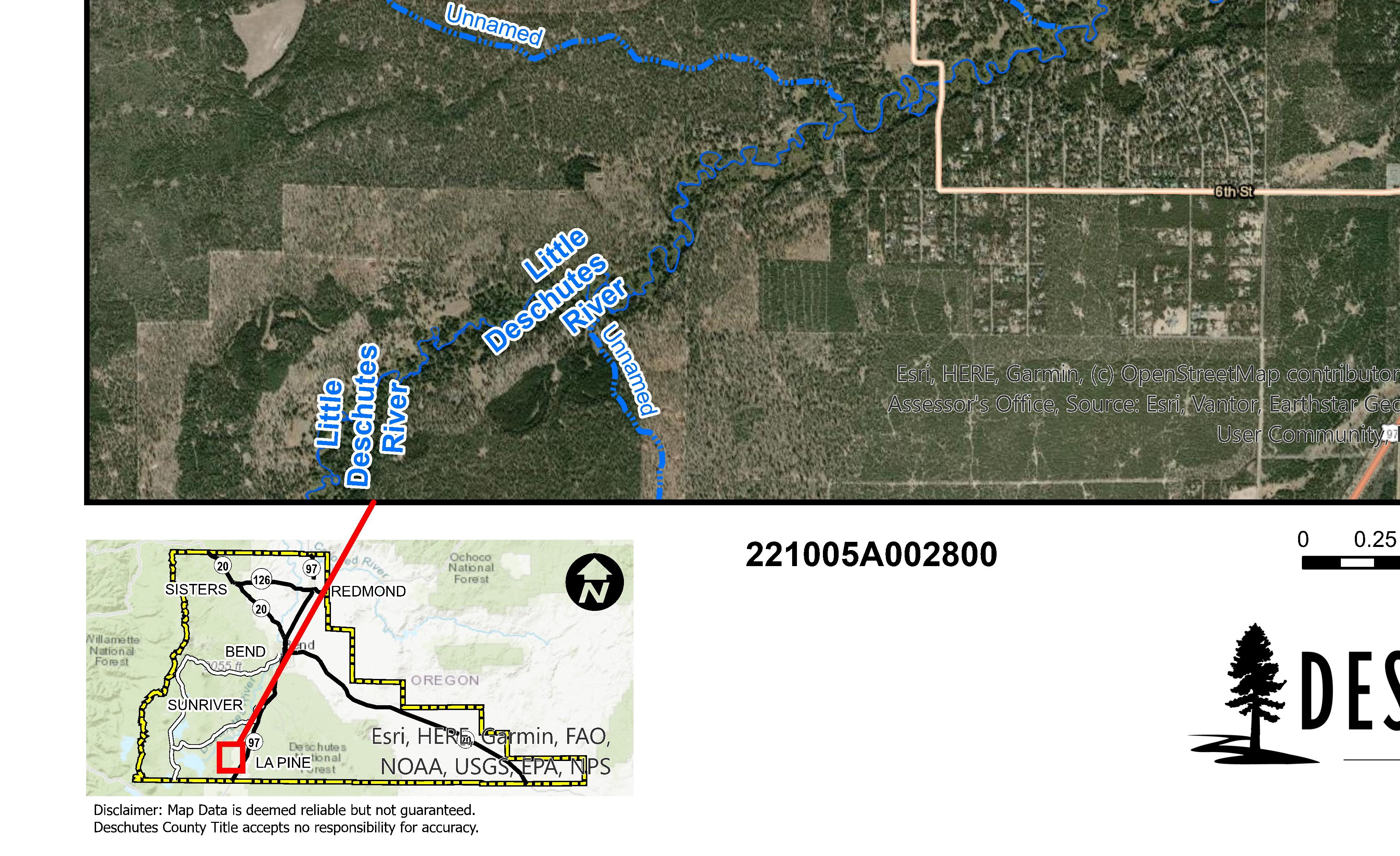 The information and maps presented in this report are provided for your convenience. Every reasonable effort has been made to assure the accuracy of the data and associated maps. Deschutes County makes no warranty, representation or guarantee as to the content, sequence, accuracy, timeliness or completeness of any of the data provided herein. Deschutes County explicitly disclaims any representations and warranties, including, without limitation, the implied warranties of merchantability and fitness for a particular purpose. Deschutes County shall assume no liability for any errors, omissions, or inaccuracies in the information provided regardless of how caused. Deschutes County assumes no liability for any decisions made or actions taken or not taken by the user of this information or data furnished hereunder.