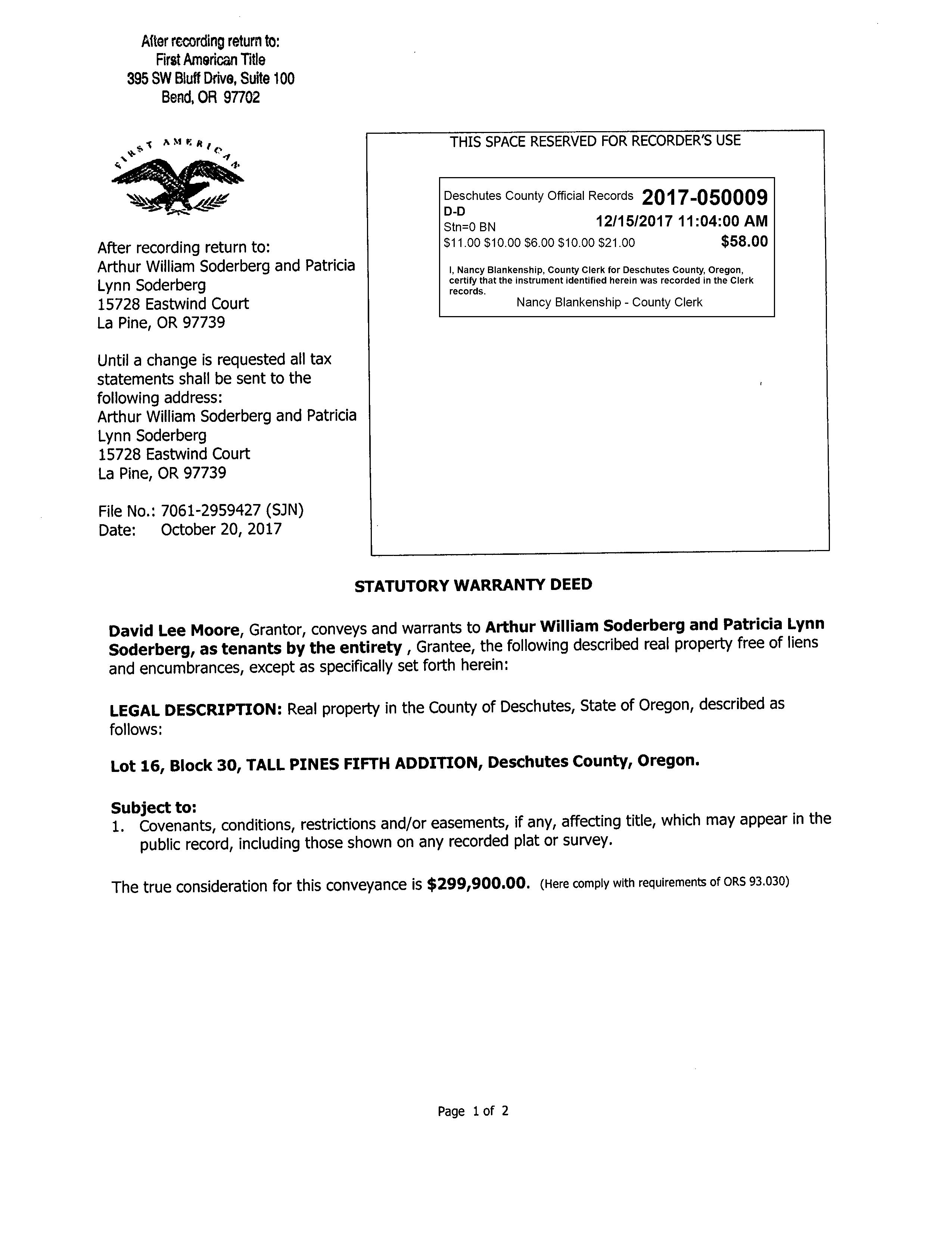 CoOwner: Site:15728EastwindCt LaPineOR97739 Mail:POBox2596 LaPineOR97739