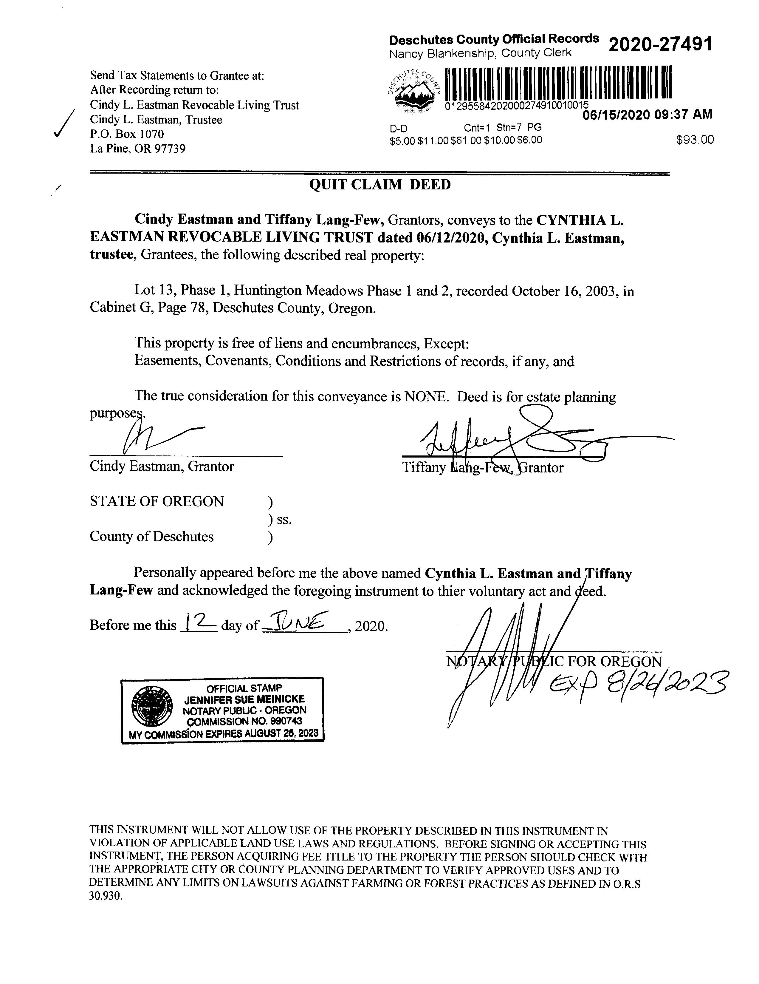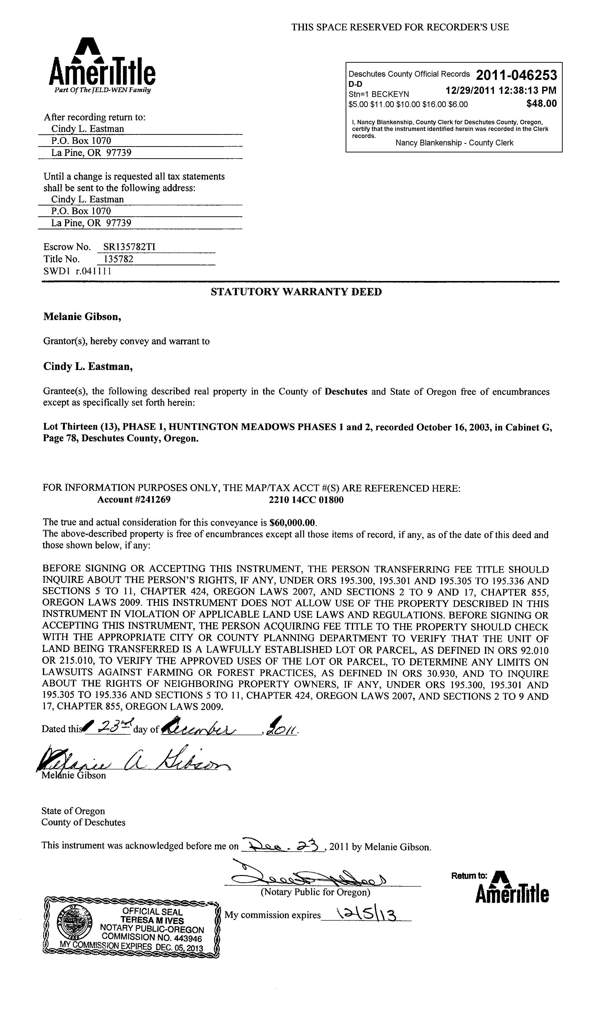 PREPAREDBY DanettaRider danettar@deschutestitle.com