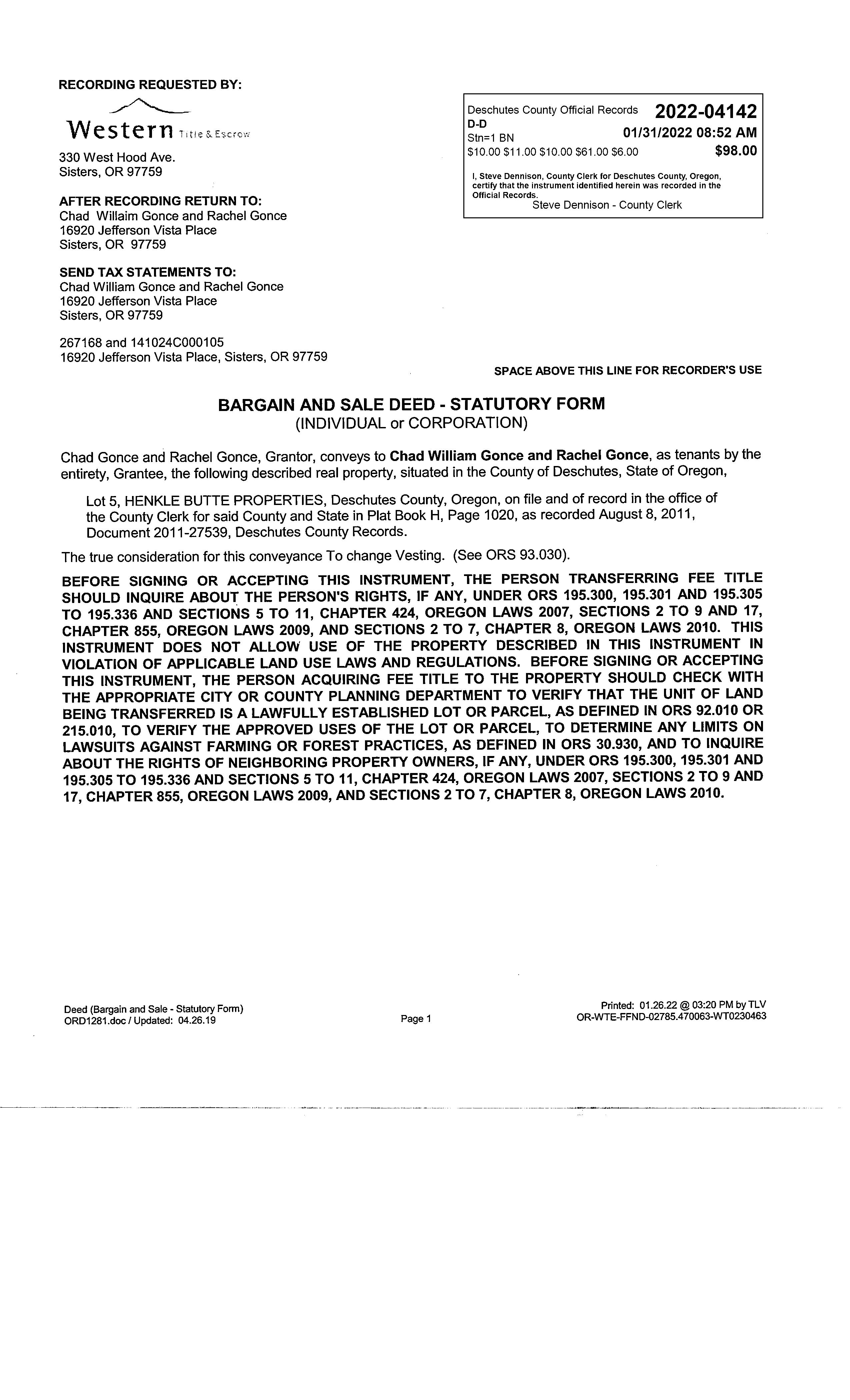 PREPAREDBY DanettaRider danettar@deschutestitle.com