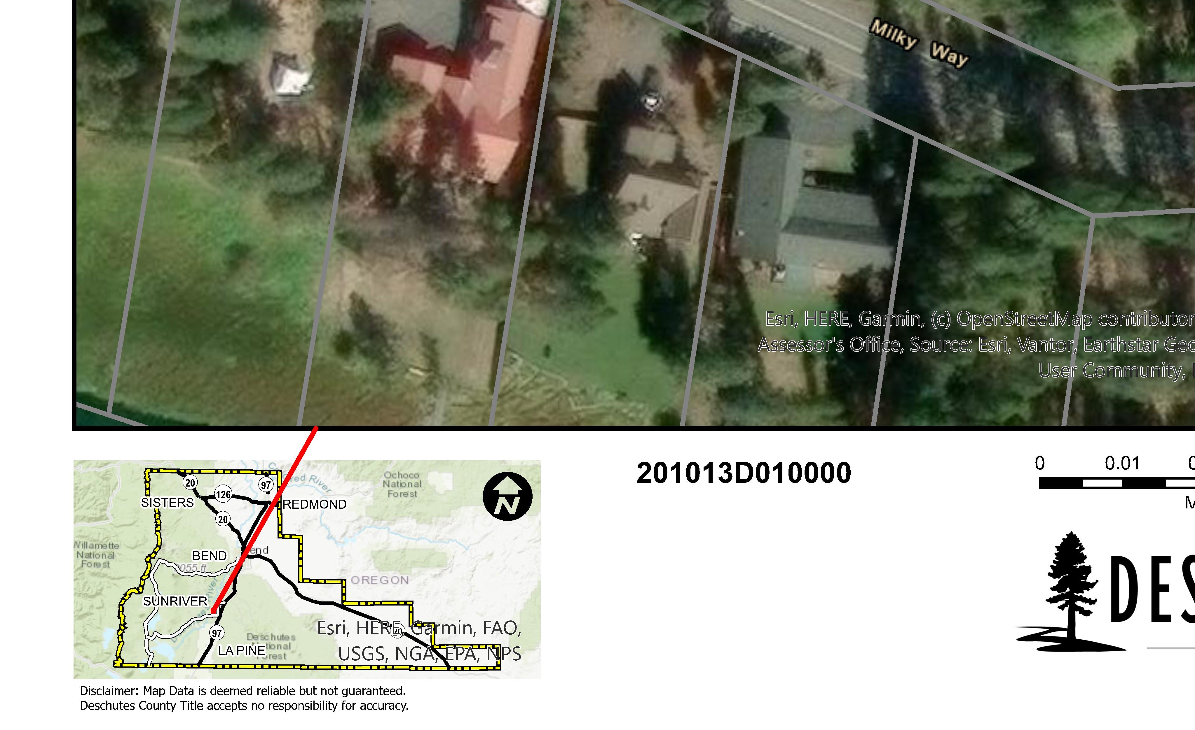 Review of digital records maintained by the Deschutes County Assessor’s Office, Tax Office, Finance Office, and the Community Development Department indicates that there are County tax, assessment, or property development related notations associated with this account and that have been identified above. Independent verification of the presence of additional Deschutes County tax, assessment, development, and other property related considerations is recommended. Confirmation is commonly provided by title companies, real estate agents, developers, engineering and surveying firms, and other parties who are involved in property transactions or property development. In addition, County departments may be contacted directly to discuss the information.