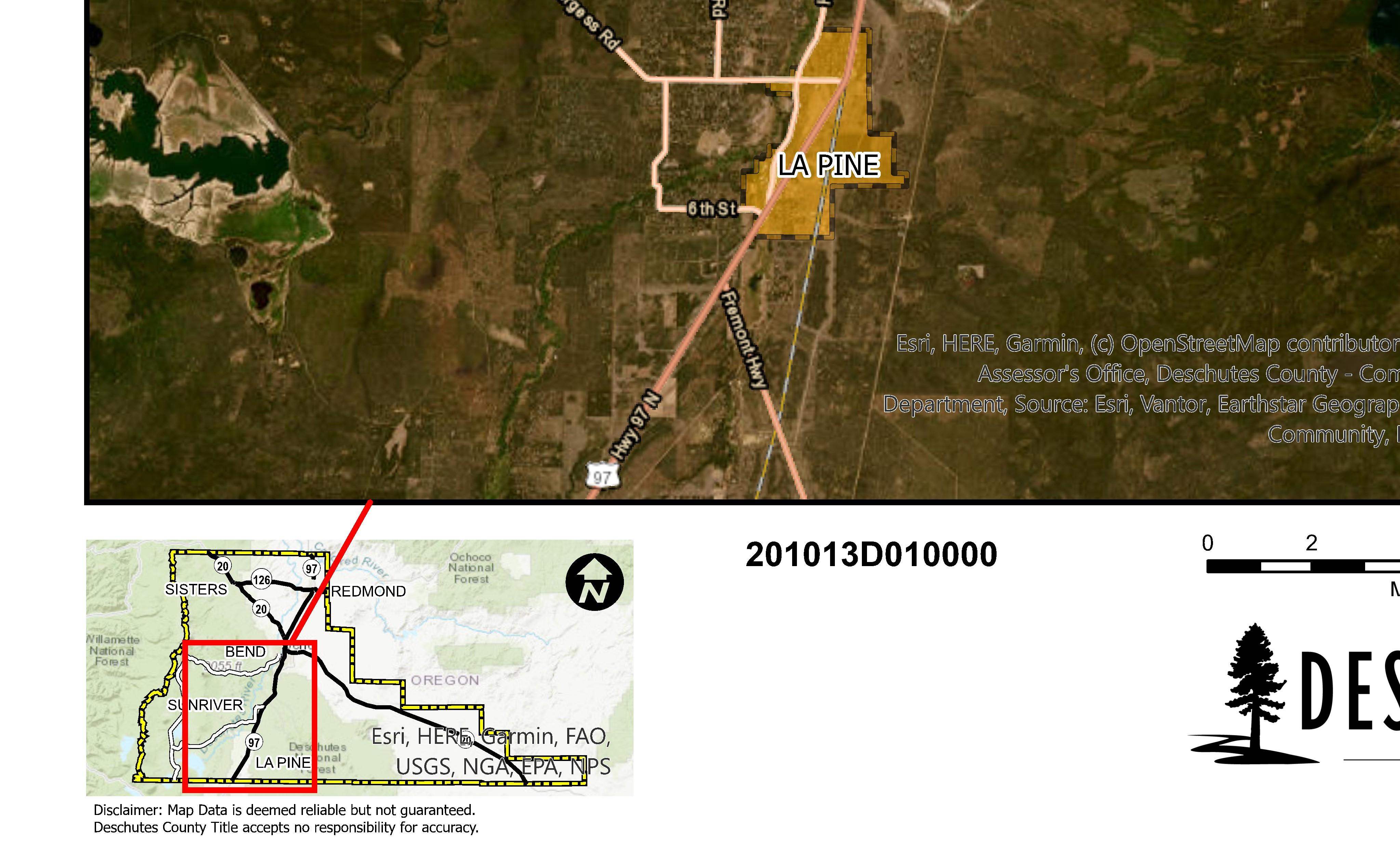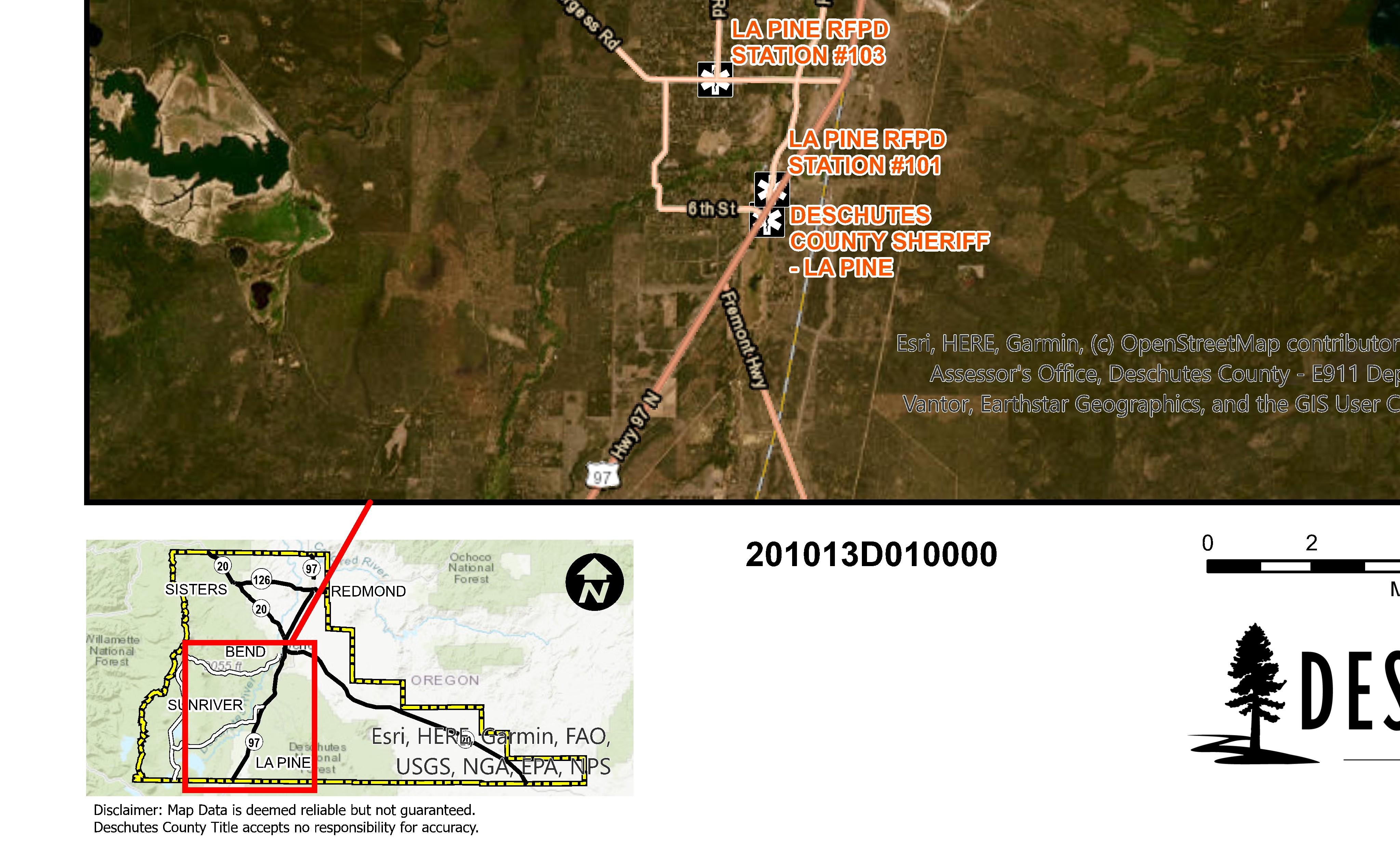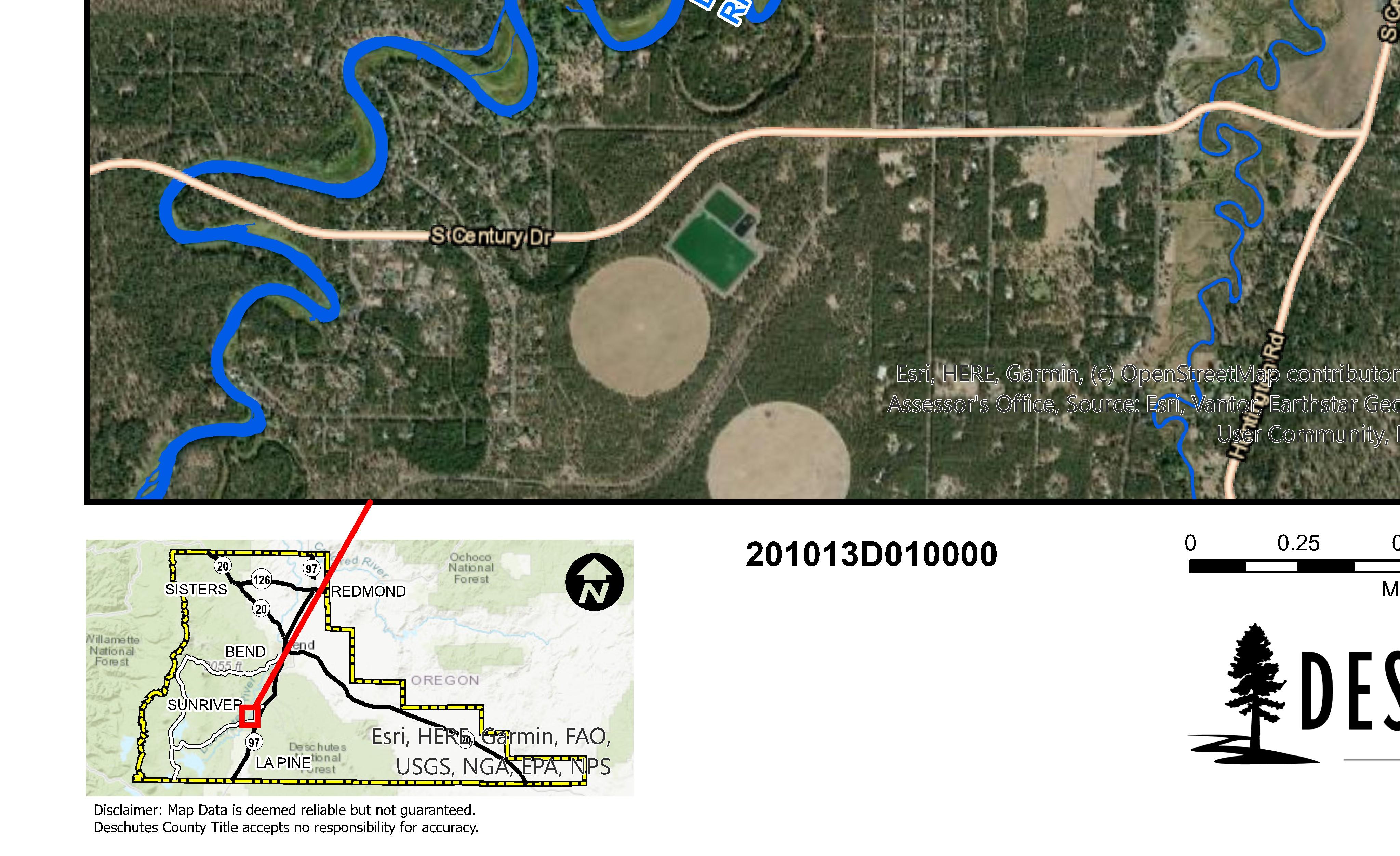 The information and maps presented in this report are provided for your convenience. Every reasonable effort has been made to assure the accuracy of the data and associated maps. Deschutes County makes no warranty, representation or guarantee as to the content, sequence, accuracy, timeliness or completeness of any of the data provided herein. Deschutes County explicitly disclaims any representations and warranties, including, without limitation, the implied warranties of merchantability and fitness for a particular purpose. Deschutes County shall assume no liability for any errors, omissions, or inaccuracies in the information provided regardless of how caused. Deschutes County assumes no liability for any decisions made or actions taken or not taken by the user of this information or data furnished hereunder.