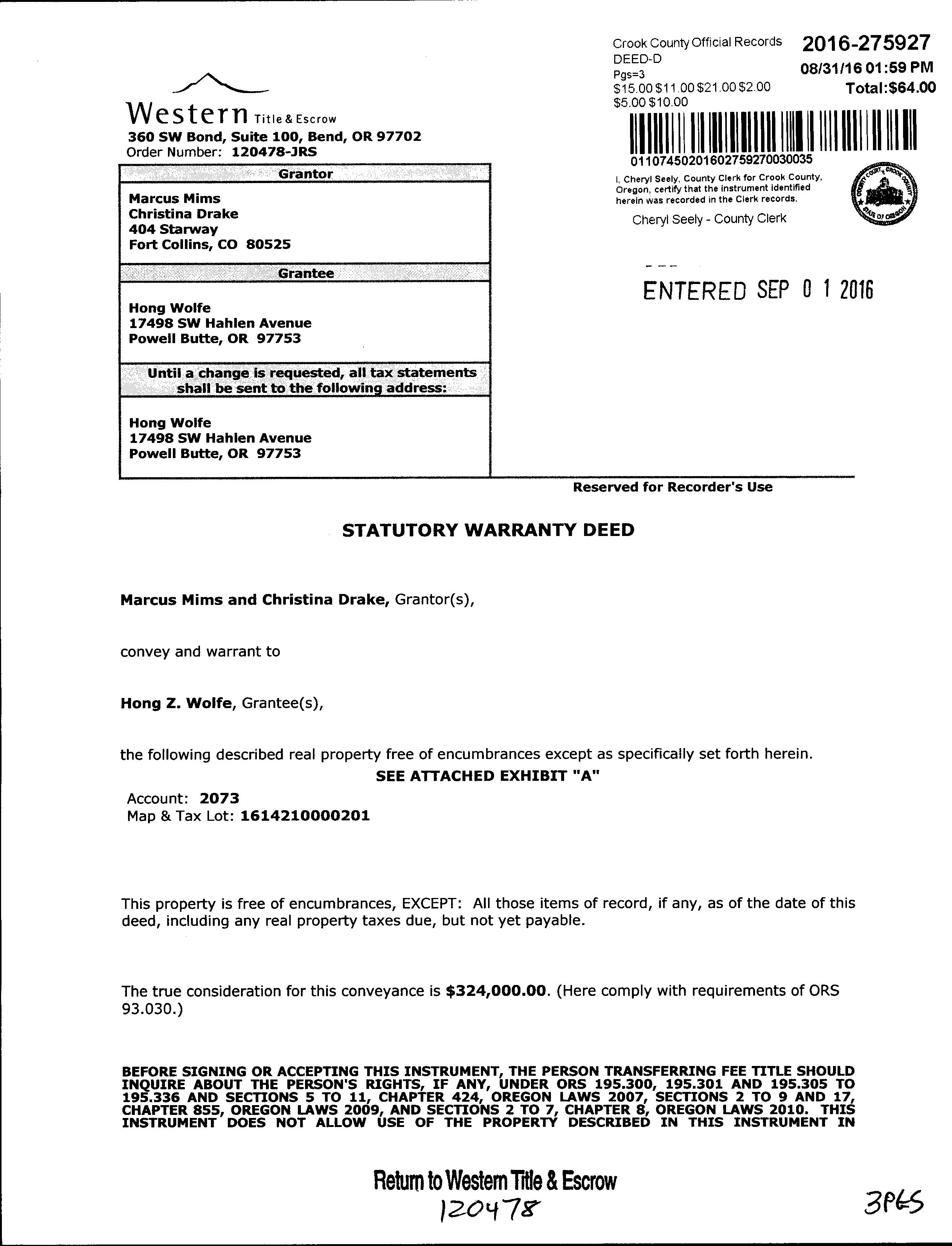PREPAREDBY DanettaRider danettar@deschutestitle.com