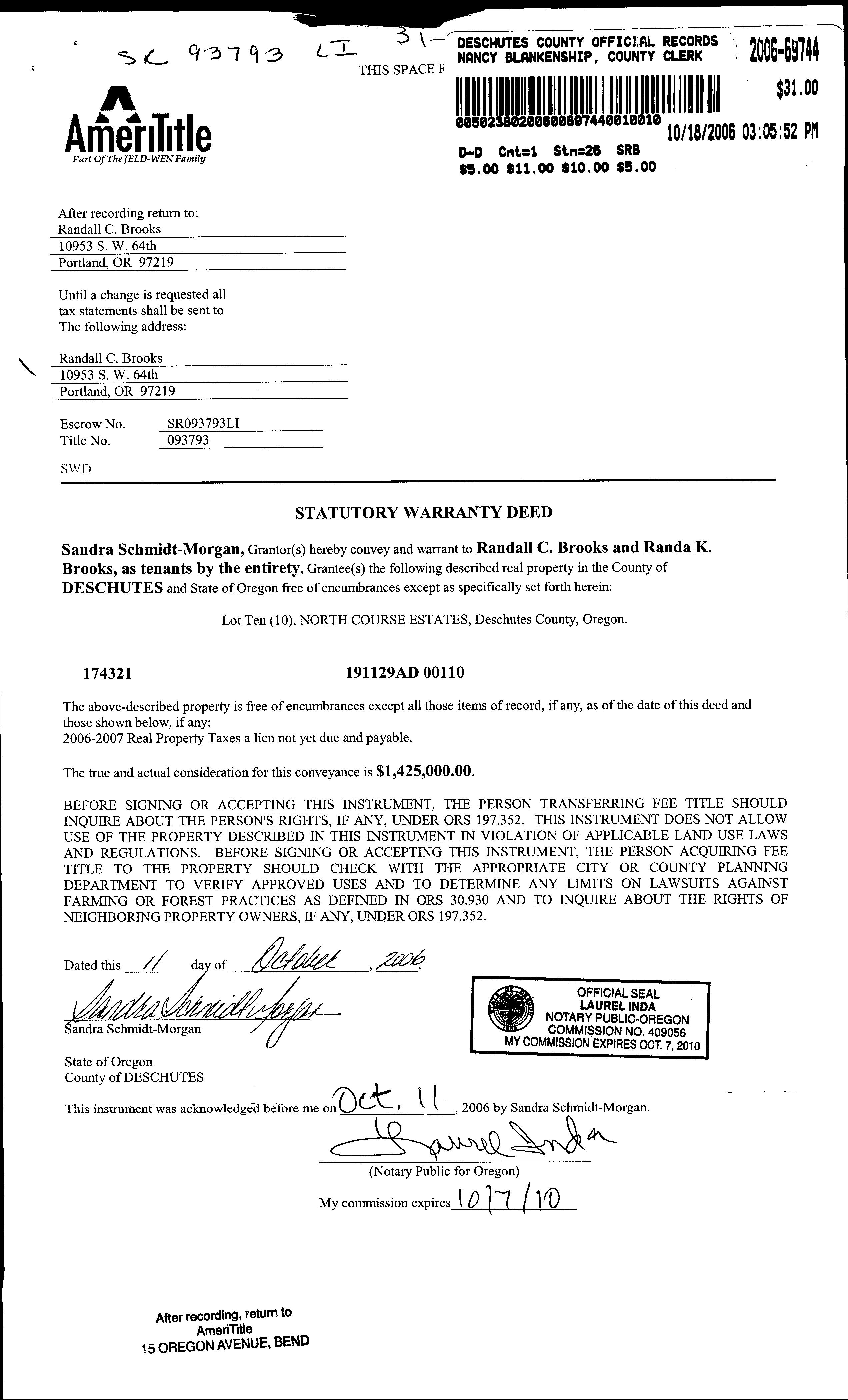 Review of digital records maintained by the Deschutes County Assessor’s Office, Tax Office, Finance Office, and the Community Development Department indicates that there are County tax, assessment, or property development related notations associated with this account and that have been identified above. Independent verification of the presence of additional Deschutes County tax, assessment, development, and other property related considerations is recommended. Confirmation is commonly provided by title companies, real estate agents, developers, engineering and surveying firms, and other parties who are involved in property transactions or property development. In addition, County departments may be contacted directly to discuss the information.