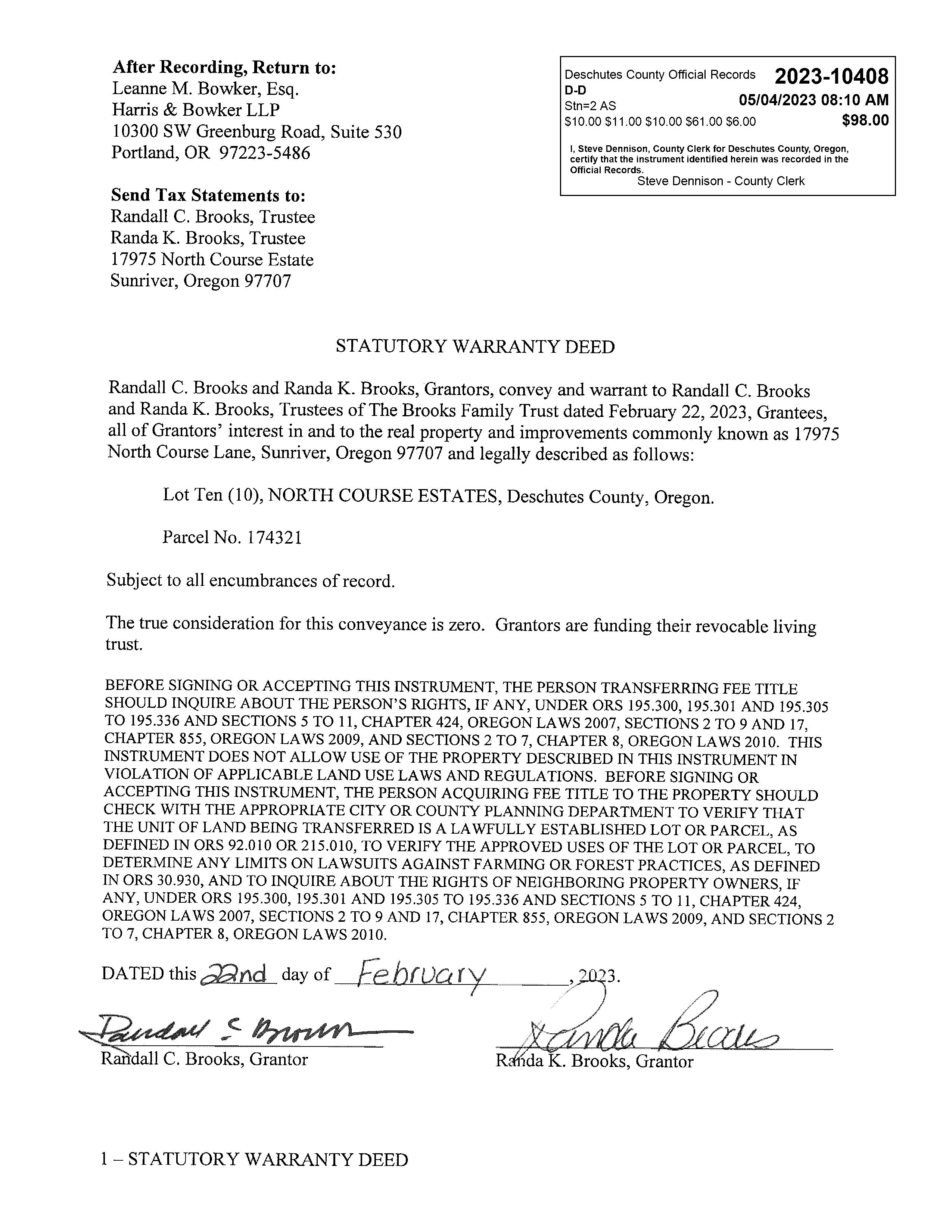 Permit Number: BROOKS, RANDALL C & RANDA K