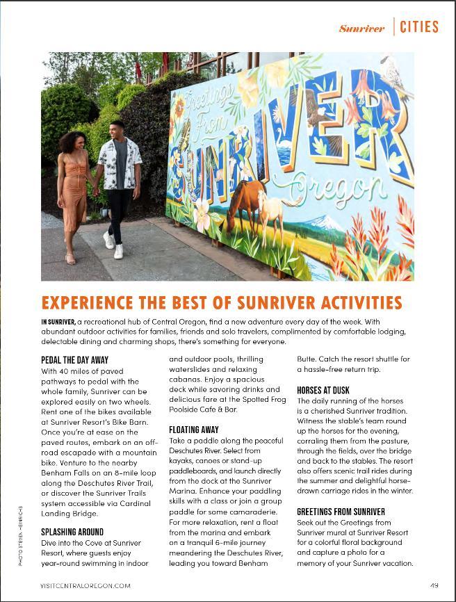 Located on the eastern slopes of the Cascade Range, where vast forests give way to the arid high desert, Central Oregon boasts year-round adventure and a rare mix of city amenities and world-famous outdoor recreation. The region offers the slower speed of a small town with access to toprated healthcare and infrastructure to support continued economic growth.