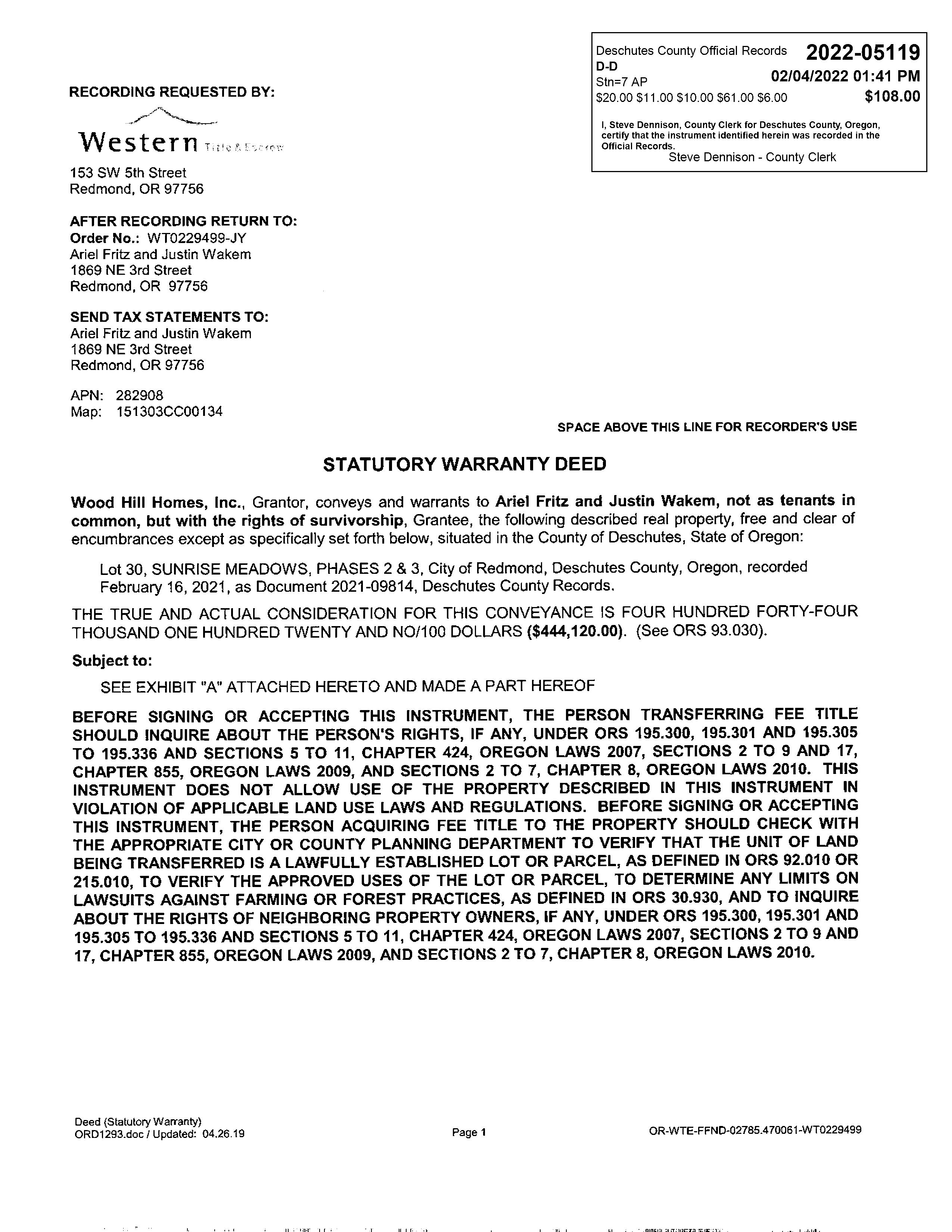 PREPAREDBY DanettaRider danettar@deschutestitle.com