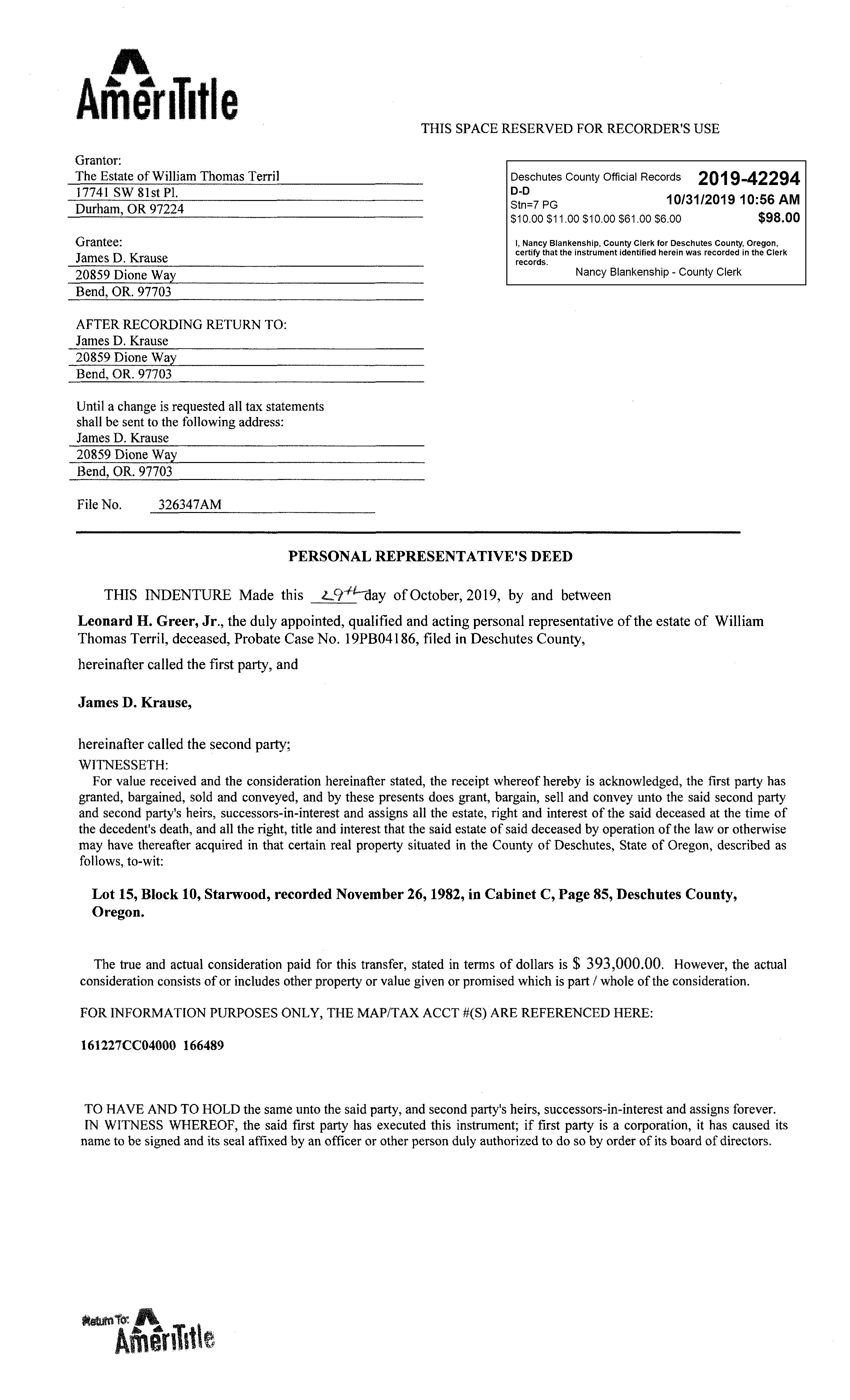 PREPAREDBY DanettaRider danettar@deschutestitle.com