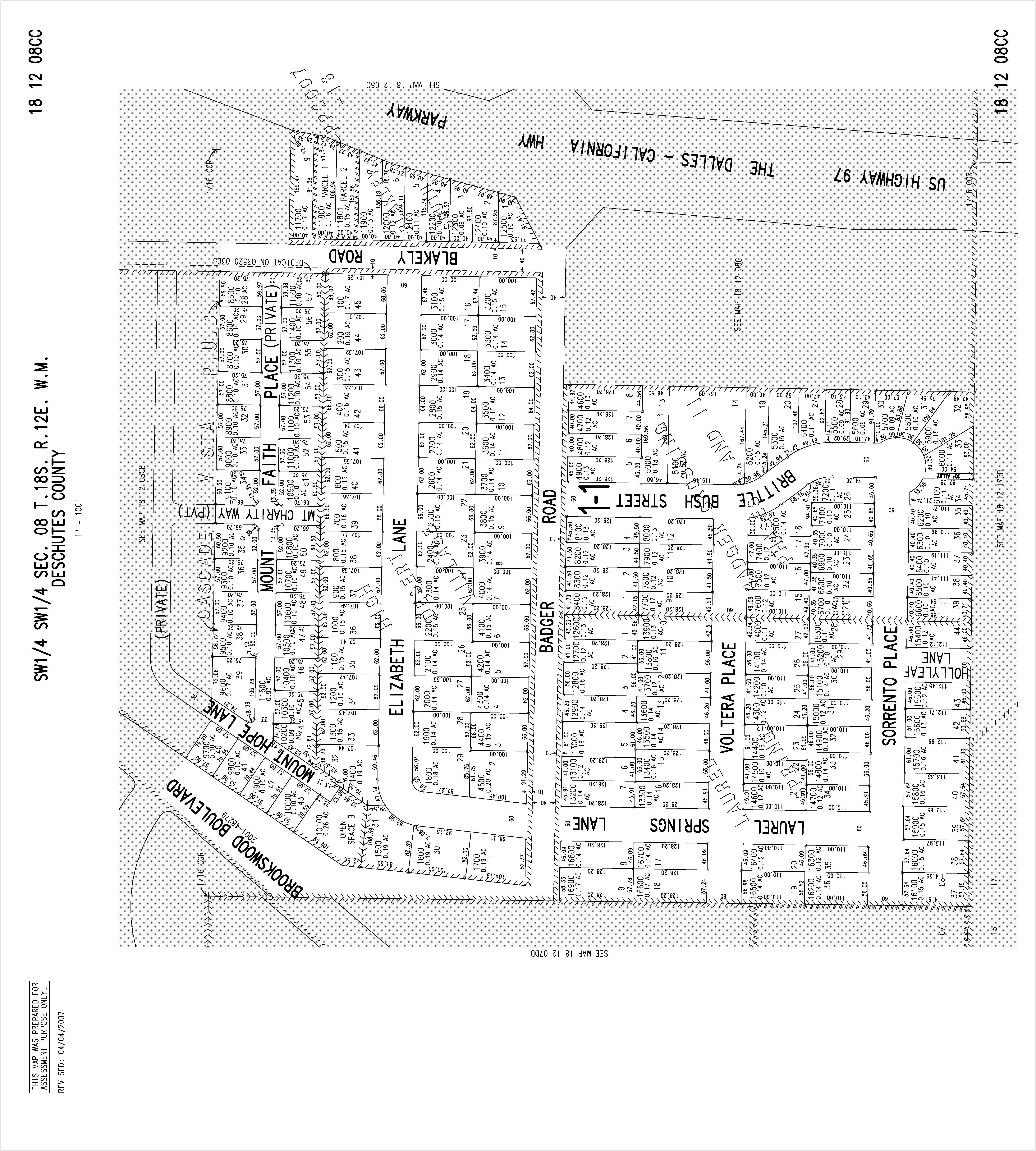 Review of digital records maintained by the Deschutes County Assessor’s Office, Tax Office, Finance Office, and the Community Development Department indicates that there are no special tax, assessment or property development related notations associated with this account. However, independent verification of the presence of other Deschutes County tax, assessment, development, and additional property related considerations is recommended. Confirmation is commonly provided by title companies, real estate agents, developers, engineering and surveying firms, and other parties who are involved in property transactions or property development. In addition, County departments may be contacted directly to discuss the information.