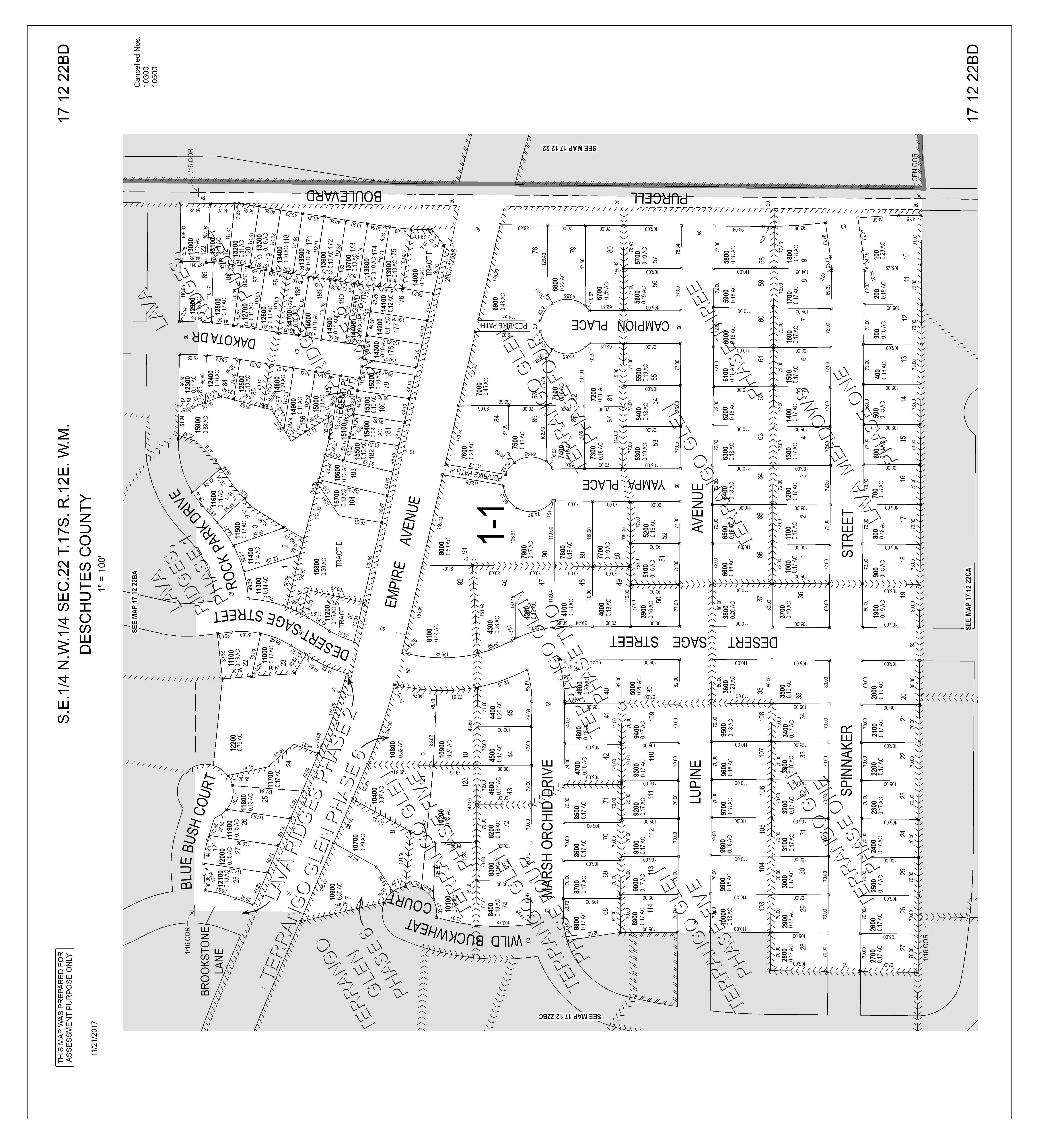 Review of digital records maintained by the Deschutes County Assessor’s Office, Tax Office, Finance Office, and the Community Development Department indicates that there are no special tax, assessment or property development related notations associated with this account. However, independent verification of the presence of other Deschutes County tax, assessment, development, and additional property related considerations is recommended. Confirmation is commonly provided by title companies, real estate agents, developers, engineering and surveying firms, and other parties who are involved in property transactions or property development. In addition, County departments may be contacted directly to discuss the information.