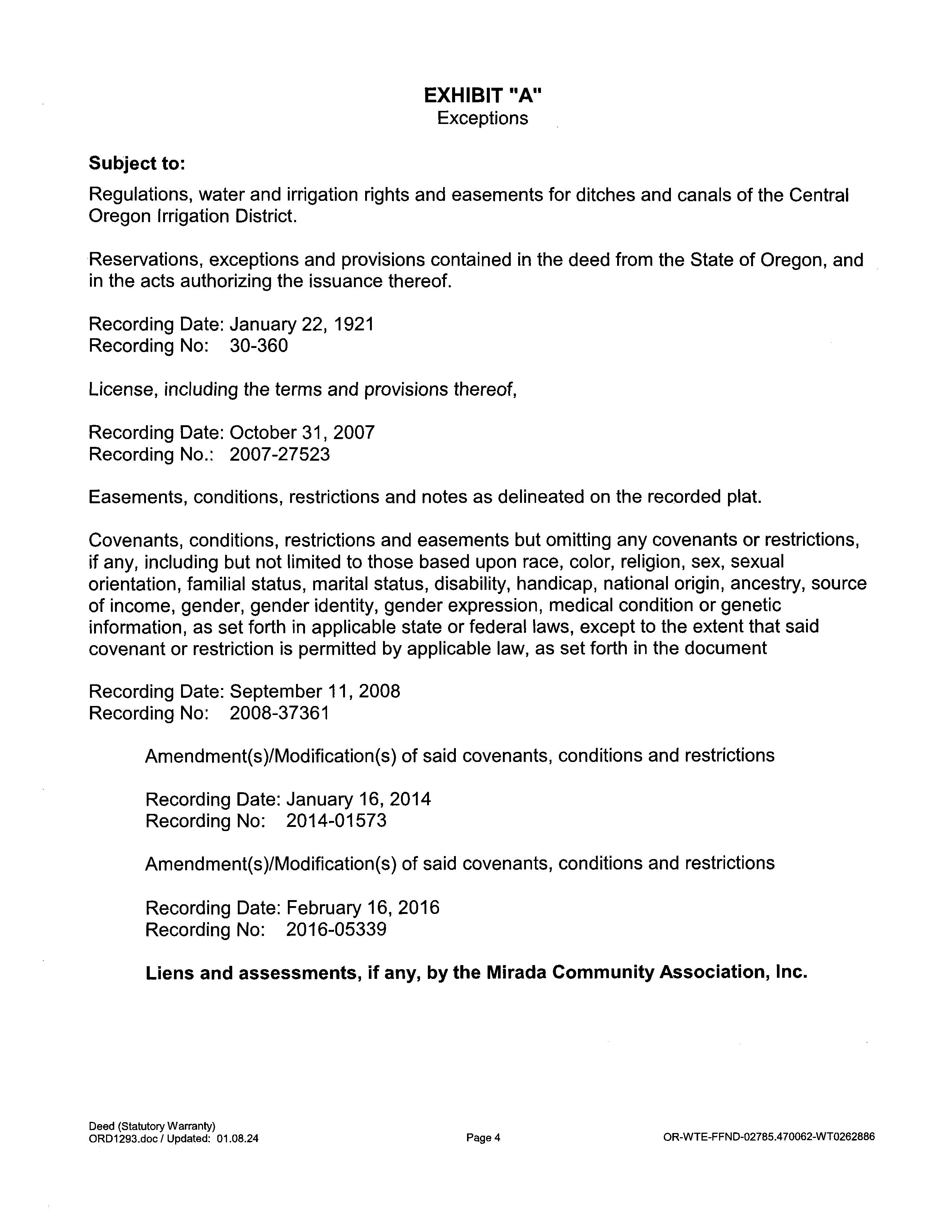 Note: Until a full Title search has been done, there may be updated CC&R’s.