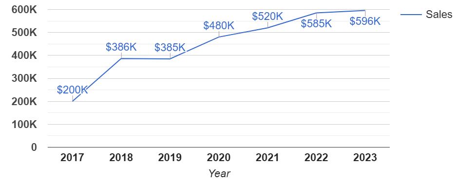 SalesStatisticsbyYear:01/01/2016-04/04/2024 Year # Sales Price/SqFtPrice/FinSqFt % Turnover AvgSale Price MinSale Price MaxSale Price 2017 1 $99 $99 3 $200,000 $200,000 $200,000 2018 3 $194 $194 8 $386,333 $350,000 $434,000 2019 1 $176 $176 3 $385,000 $385,000 $385,000 2020 1 $240 $240 3 $480,000 $480,000 $480,000 2021 1 $238 $238 3 $520,000 $520,000 $520,000 2022 2 $317 $317 5 $585,000 $580,000 $590,000 2023 3 $317 $317 8 $595,967 $545,000 $659,000