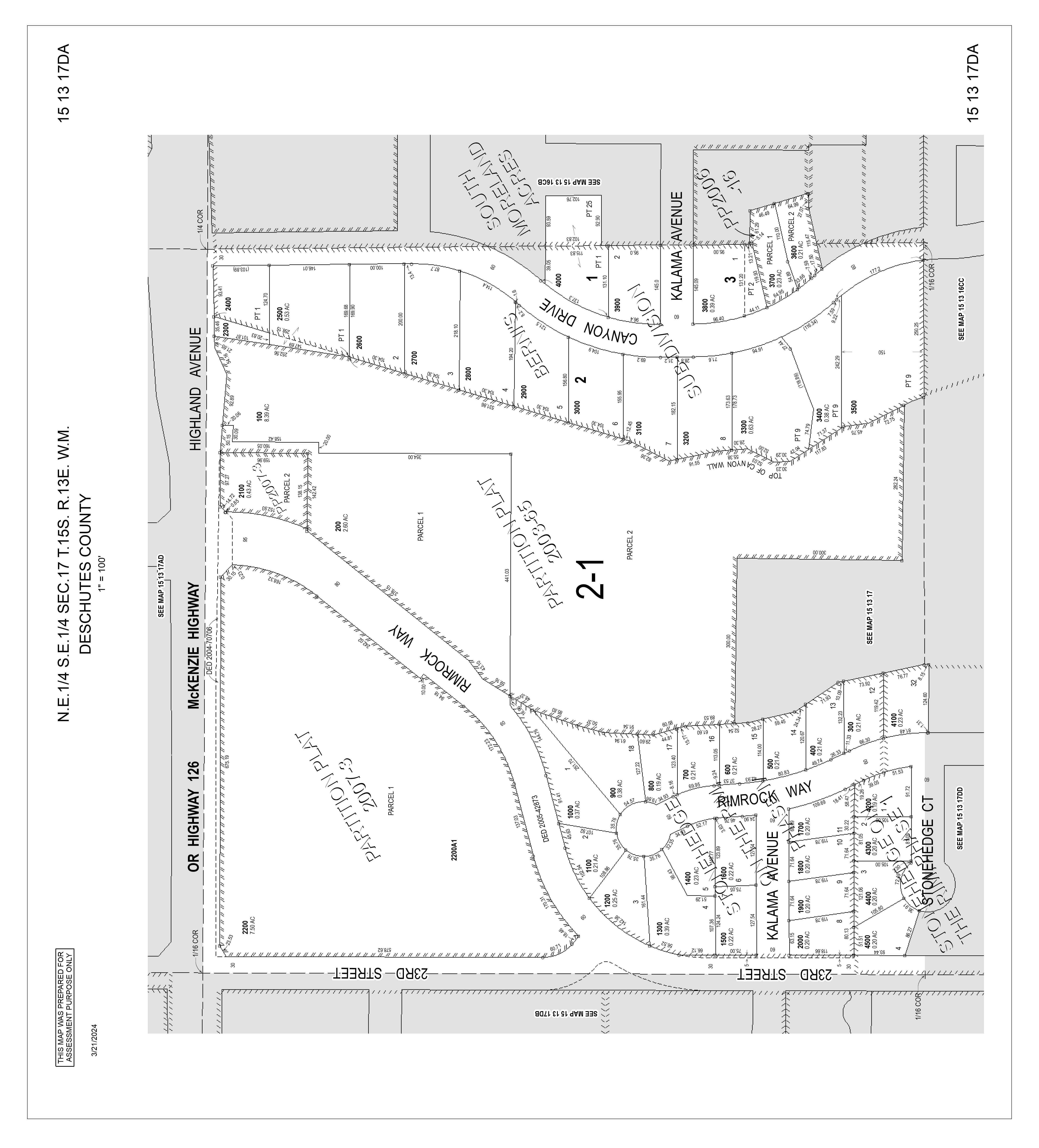 Review of digital records maintained by the Deschutes County Assessor’s Office, Tax Office, Finance Office, and the Community Development Department indicates that there are no special tax, assessment or property development related notations associated with this account. However, independent verification of the presence of other Deschutes County tax, assessment, development, and additional property related considerations is recommended. Confirmation is commonly provided by title companies, real estate agents, developers, engineering and surveying firms, and other parties who are involved in property transactions or property development. In addition, County departments may be contacted directly to discuss the information.