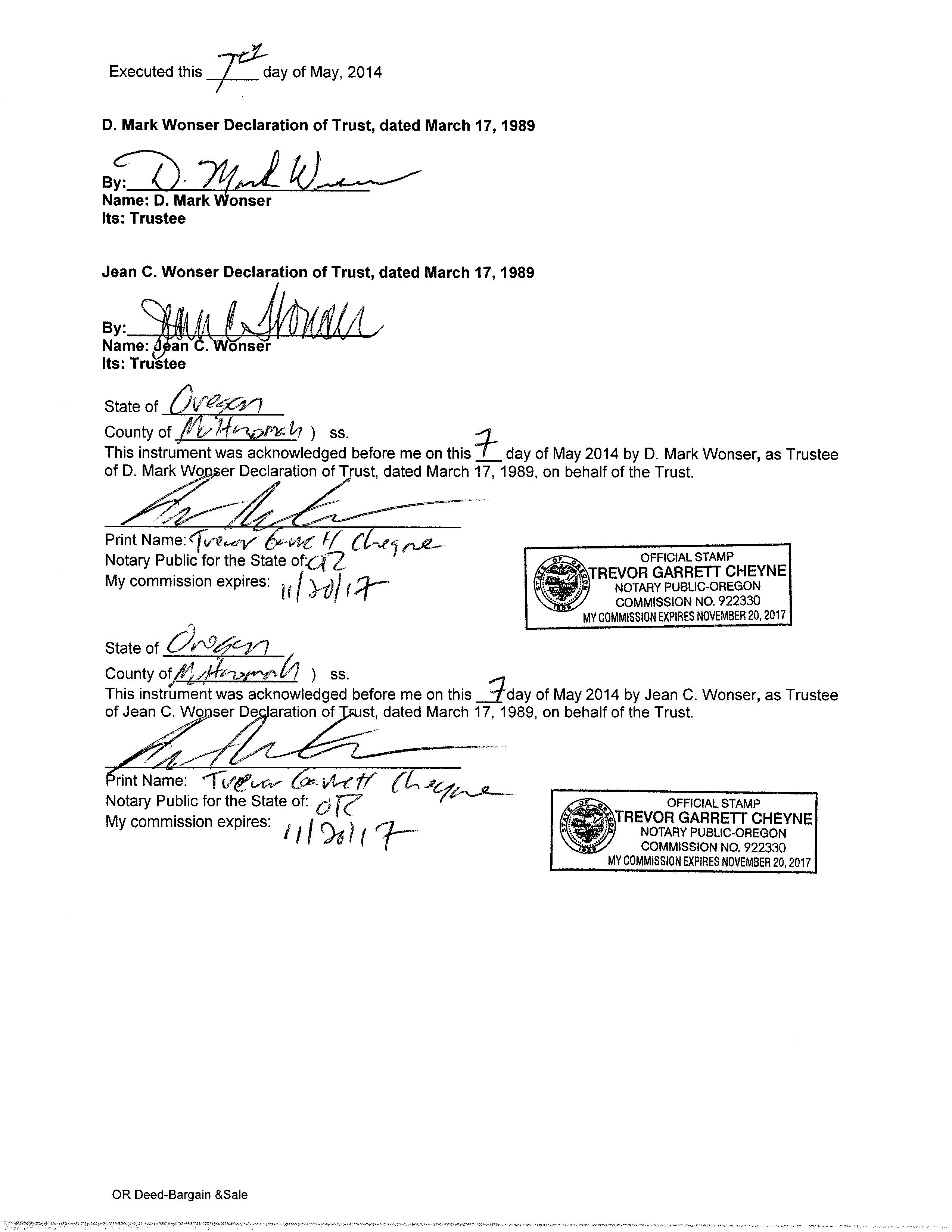 Children ParcelNo. Seg/MergeNo. Status FromDate ToDate DocumentNumber No Children Found ActiveExemptions No Exemptions Found Events Effective Date EntryDateTime Type Remarks 06/24/2015 06/24/2015 08:47:00 Current Use Removal--To Year Value Set 0.70 Acres, does not meet minimum stocking requirements-Effective to year 2014 Designated Forestland by MAURAJEN 05/07/2014 05/12/2014 13:26:00 Taxpayer Changed Property Transfer Filing No.: 261937 05/07/2014 by CINDYSIM 05/07/2014 05/12/2014 13:26:00 Recording Processed Property Transfer Filing No.: 261937, Bargain & Sale, Recording No.: 2014-021468 05/07/2014 by CINDYSIM 04/19/2005 04/19/2005 15:59:00 Annexation Completed For Property Form Estacada Library Svc, Ord 172-2004 Pt 10 for 2005-Revise TCA Membership by JENMAYO 07/01/1999 07/01/1999 12:00:00 Ownership at Conversion Bargain and Sale: 99-16521, 2/1/99, $ 0 TaxBalance TotalDueonlyincludesthecurrent2022taxes PleaseselectViewDetailedStatementforafullpayo InstallmentsPayable/PaidforTaxYear(Enter4-digitYear,thenClick-Here): 2022 Receipts Date ReceiptNo. AmountAppliedto Parcel TotalAmount Due Receipt Total Change 11/08/2022 00:00:00 5221799 (ReceiptDetail.aspx? receiptnumber=5221799) $29,059.81 $29,059.81 $28,188.02 $0.00 11/09/2021 00:00:00 5110917 (ReceiptDetail.aspx? receiptnumber=5110917) $28,274.23 $28,274.23 $27,426.00 $0.00 10/29/2020 00:00:00 4826140 (ReceiptDetail.aspx? receiptnumber=4826140) $27,144.32 $27,144.32 $26,329.99 $0.00 11/13/2019 00:00:00 4680892 (ReceiptDetail.aspx? receiptnumber=4680892) $26,796.48 $26,796.48 $25,992.59 $0.00 11/05/2018 00:00:00 4456190 (ReceiptDetail.aspx? receiptnumber=4456190) $26,157.30 $26,157.30 $25,372.58 $0.00 SalesHistory SaleDate EntryDate Recording Date Recording Number Sale Amount Excise Number Deed Type Transfer Type Grantor(Seller) Grantee(Buyer) Other Parcels 05/07/2014 05/12/2014 05/07/2014 2014021468 $0.00 261937 S WONSER JEAN C TRUSTEE 1/2 WONSER WOODS EVENTS LLC No Property