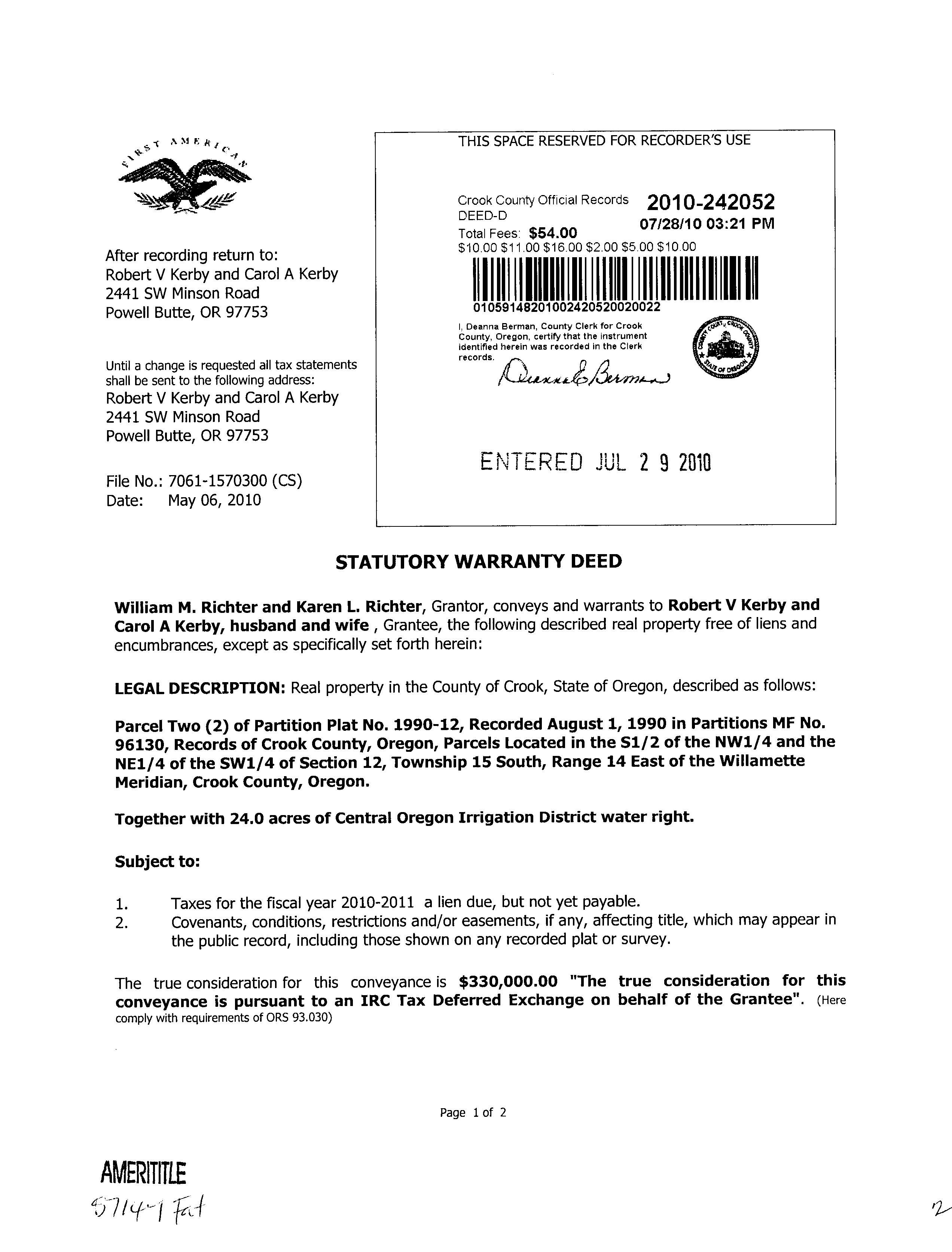 The information and maps presented in this report are provided for your convenience. Every reasonable effort has been made to assure the accuracy of the data and associated maps. Crook County makes no warranty, representation or guarantee as to the content, sequence, accuracy, timeliness or completeness of any of the data provided herein. Crook County explicitly disclaims any representations and warranties, including, without limitation, the implied warranties of merchantability and fitness for a particular purpose. Crook County shall assume no liability for any errors, omissions, or inaccuracies in the information provided regardless of how caused. Crook County assumes no liability for any decisions made or actions taken or not taken by the user of this information or data furnished hereunder.