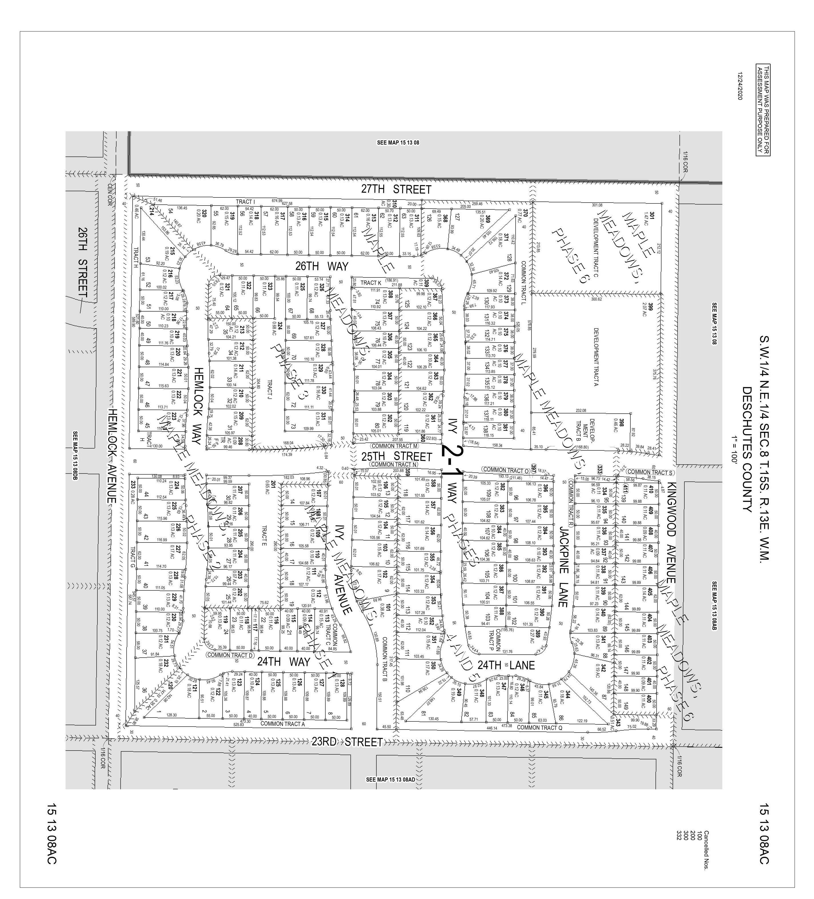 Fairh aven Ph ase X Fairh aven Ph ase Xi Meg an Par k Ph ase 1 Map le Mea do ws, Ph ase 1 Meg an Par k, Ph ase 2 Map le M ea do ws, Ph ase 2 Map le Mea do ws, Ph ase 3 Meg an Par k, Ph ase 3 Map le M ea do ws, Ph ases 4 And 5 Map le Mea do ws, Ph ase 6 Subdiv is ions M ap 25 0 4 NW IVY AVE BEND LA P INE SISTER S RED MON D SUN RIVE R ¬ « 20 ¬ « 97 ¬ 126 ¬ 20 ¬ 20 ¬ « 97 Map D ata is deemed reliable but not guaranteed Deschutes County Title accepts no responsibility for accuracy 0 175 350 87 5 Fee t I 151308-AC -00331