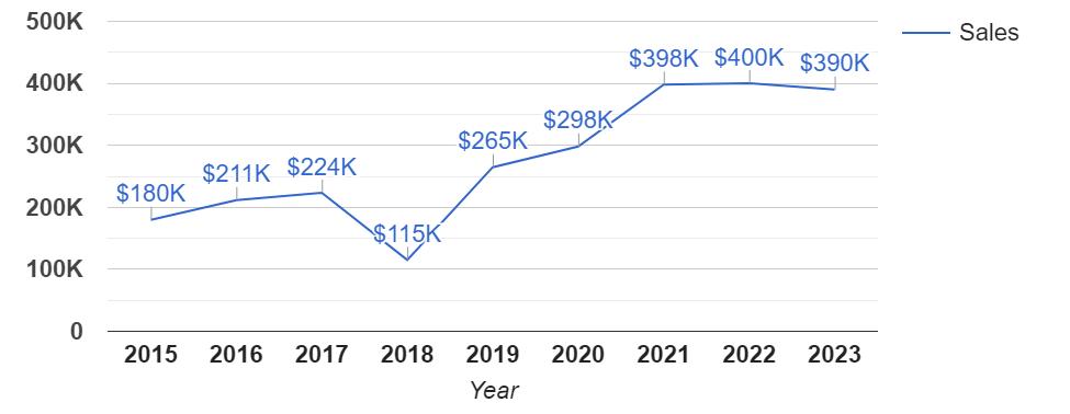 AverageSalePricebyYear:01/01/2015-04/19/2023