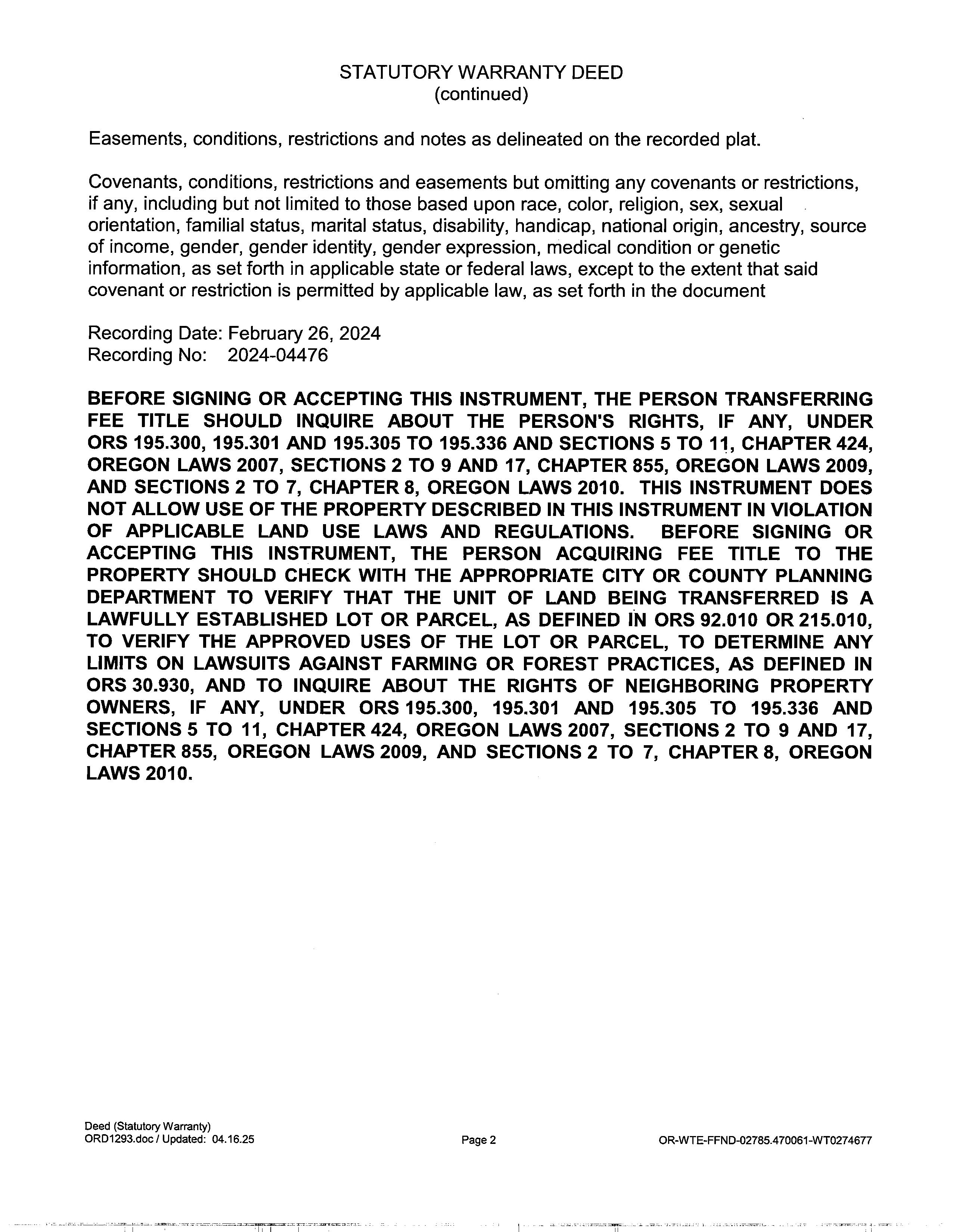 2853 WELLS ACRES RD BEND SITUS ADDRESS: