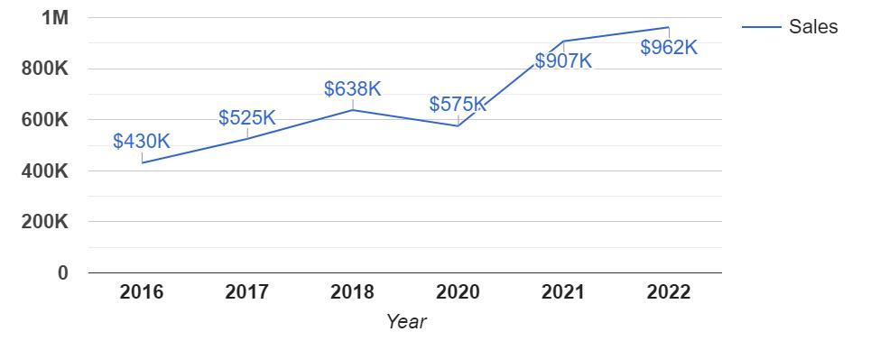 Aug 2018 Feb 2019 Aug 2019 Feb 2020 Aug 2020 Feb 2021 Aug 2021 Feb 2022 Aug 2022 Feb 2023 $300K $400K $500K $600K $700K $800K $900K