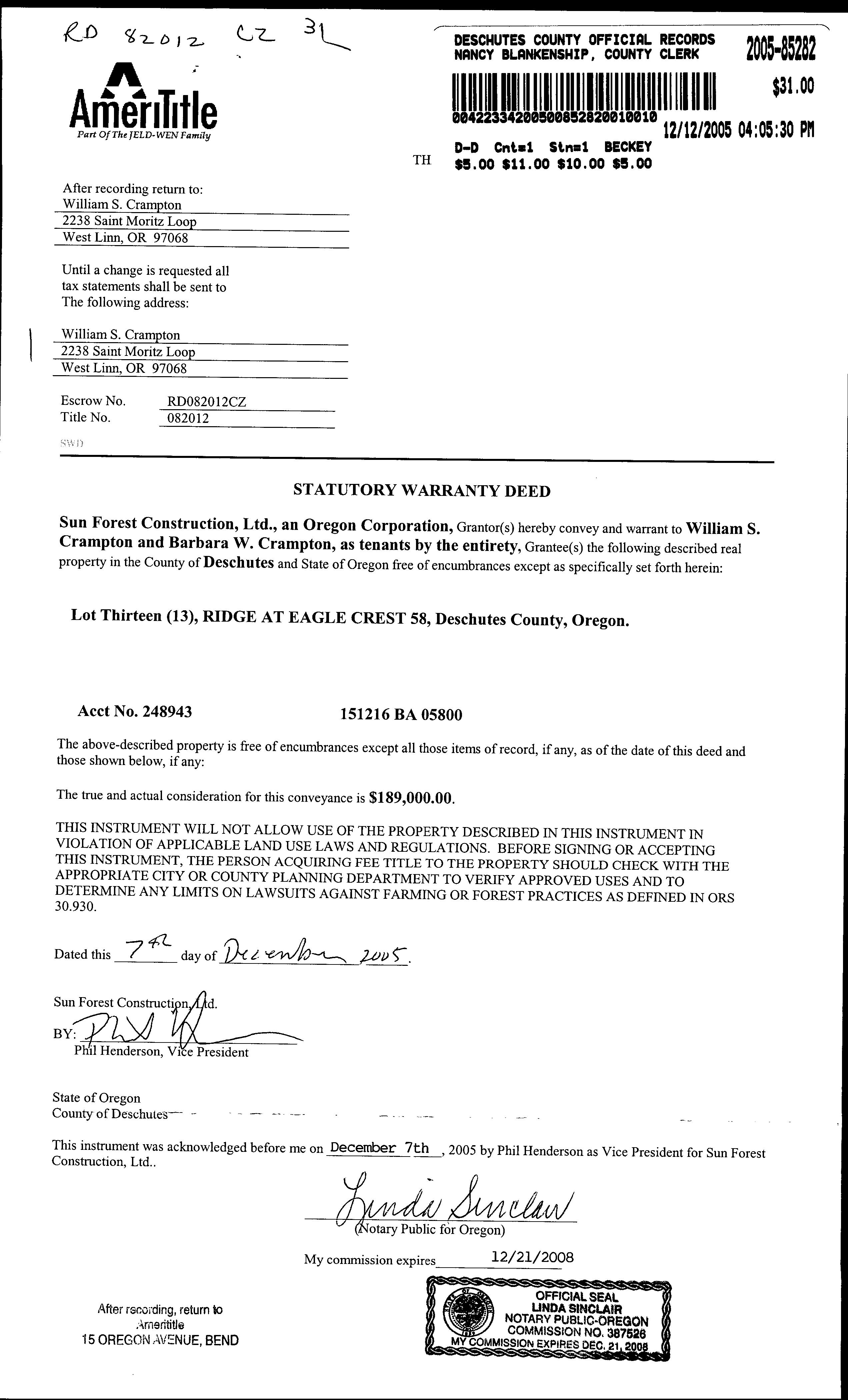 Deschutes County Title has provided this information as a courtesy and assumes no liability for the accuracy of the data and does not warranty the fitness of this product for any particular purpose. 290 Vista Rim Dr |Redmond|Oregon|97756 Bend 397 SW Upper Terrace Dr Bend, Oregon 97702 Office: 541.389.2120 Fax: 541.389.2180 Redmond 845 SW Veterans Way Redmond, Oregon 97756 Office: 541.527.1274 Fax: 541.527.1281 La Pine 51515 Huntington Rd La Pine, Oregon 97739 Office: 541.876.6990 Fax: 541.876.2740 St Helens 240 South First Street St. Helens, Oregon 97051 Office: 503.397.2587 Fax: 503.366.1708 HOMEBOOK www.deschutestitle.com