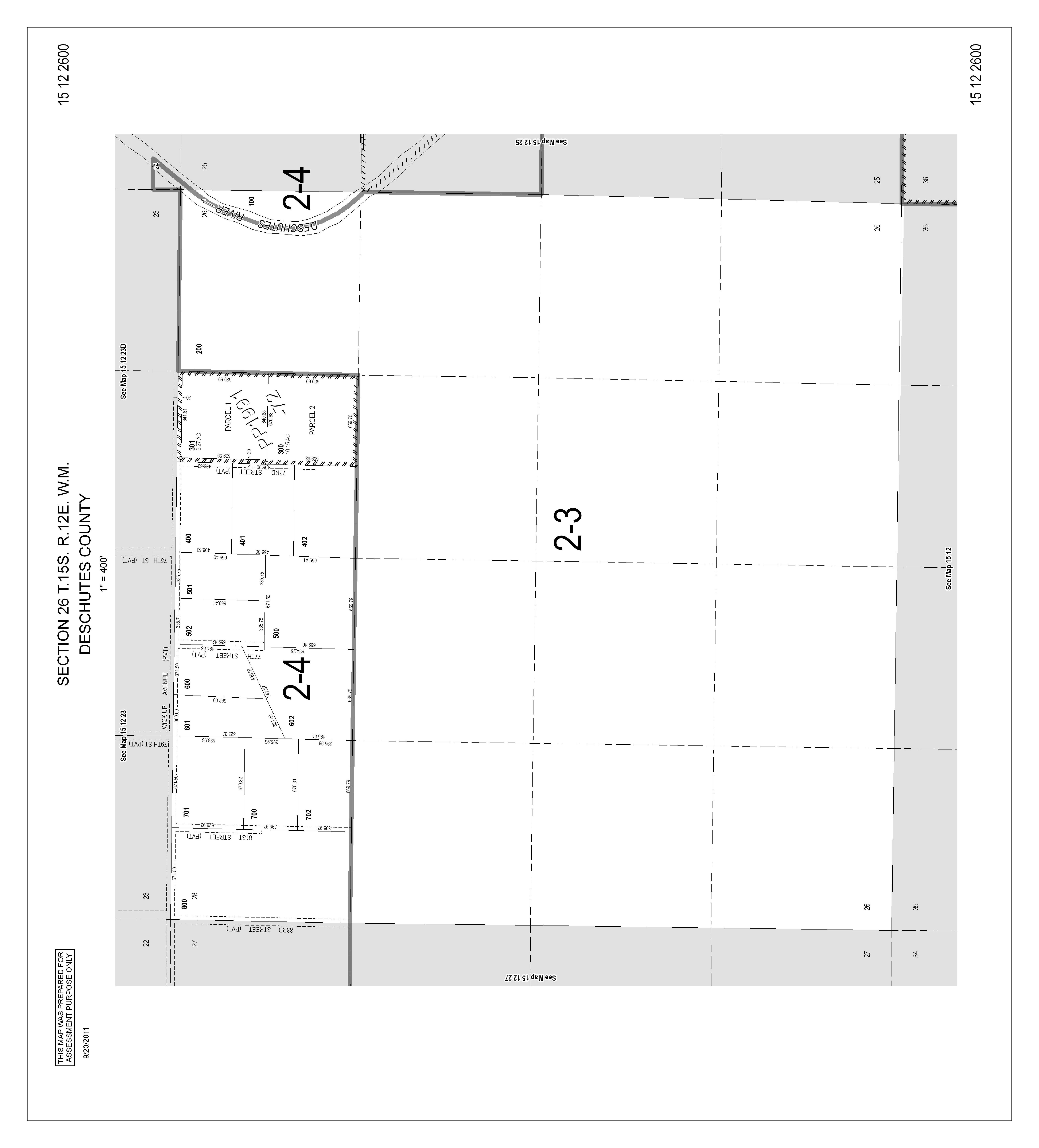 Review of digital records maintained by the Deschutes County Assessor’s Office, Tax Office, Finance Office, and the Community Development Department indicates that there are no special tax, assessment or property development related notations associated with this account. However, independent verification of the presence of other Deschutes County tax, assessment, development, and additional property related considerations is recommended. Confirmation is commonly provided by title companies, real estate agents, developers, engineering and surveying firms, and other parties who are involved in property transactions or property development. In addition, County departments may be contacted directly to discuss the information.