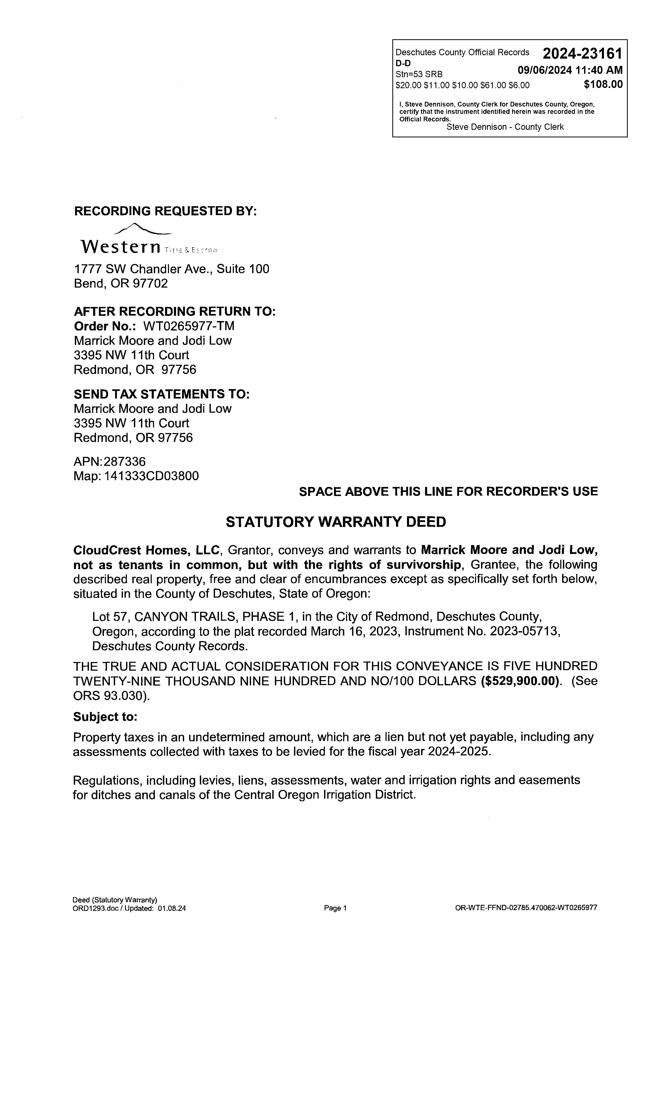 Deschutes Title and its affiliates make no express or implied warranty respecting the information presented and assumes no responsibility for errors or omissions.