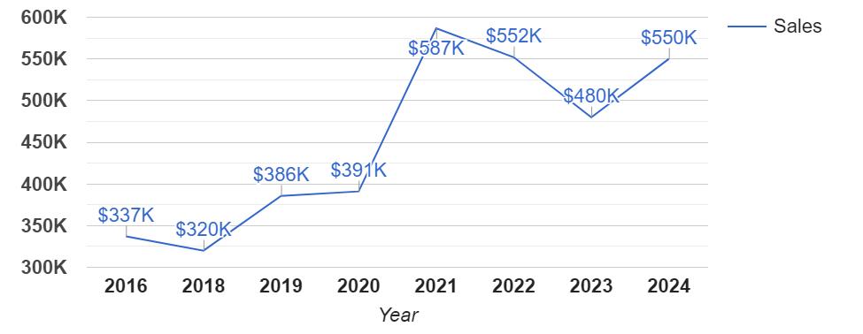 AverageSalePricebyYear:01/01/2016-08/06/2024