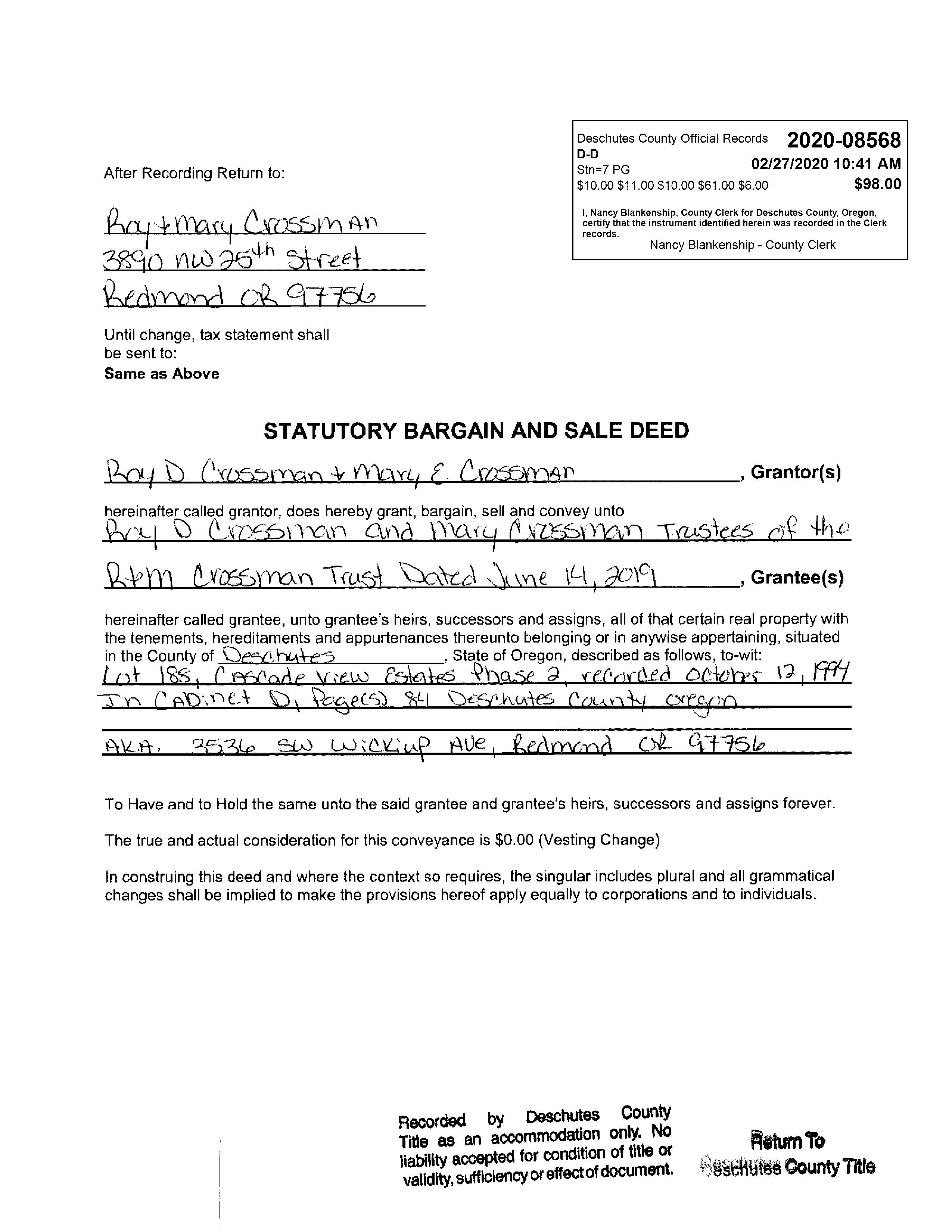 PREPAREDBY DanettaRider danettar@deschutestitle.com